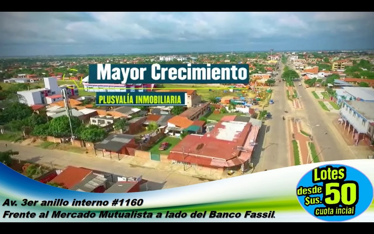 INICIO DE VENTAS! No pierdas la oportunidad de elegir tu TERRENO, con un SÚPER DESCUENTO de $us. 4 por M2, ubicado al lado de La Nueva Santa Cruz. Vive en el lugar ideal en la Zona de Mayor Crecimiento, con terrenos de Alta Plusvalía. ➡ Ingreso totalmente pavimentado y poblado. ➡A lado de la Nueva Santa Cruz. ➡Cerca del Parque Industrial Latinoamericano ➡Cerca de la termoeléctrica. ➡Cerca del Aeropuerto Viru-Viru. ➡Cerca de la Nueva Estación de Tren. ➡Acceso por la Carrtera al Norte. ➡Avenidas Pavimentadas (G77 y Prolongación Cambódromo). ➡Servicios Básicos.➡Cerca de Hospitales de 2do. y 4to. Nivel. ➡Cerca del Centro de Compras Monumental.