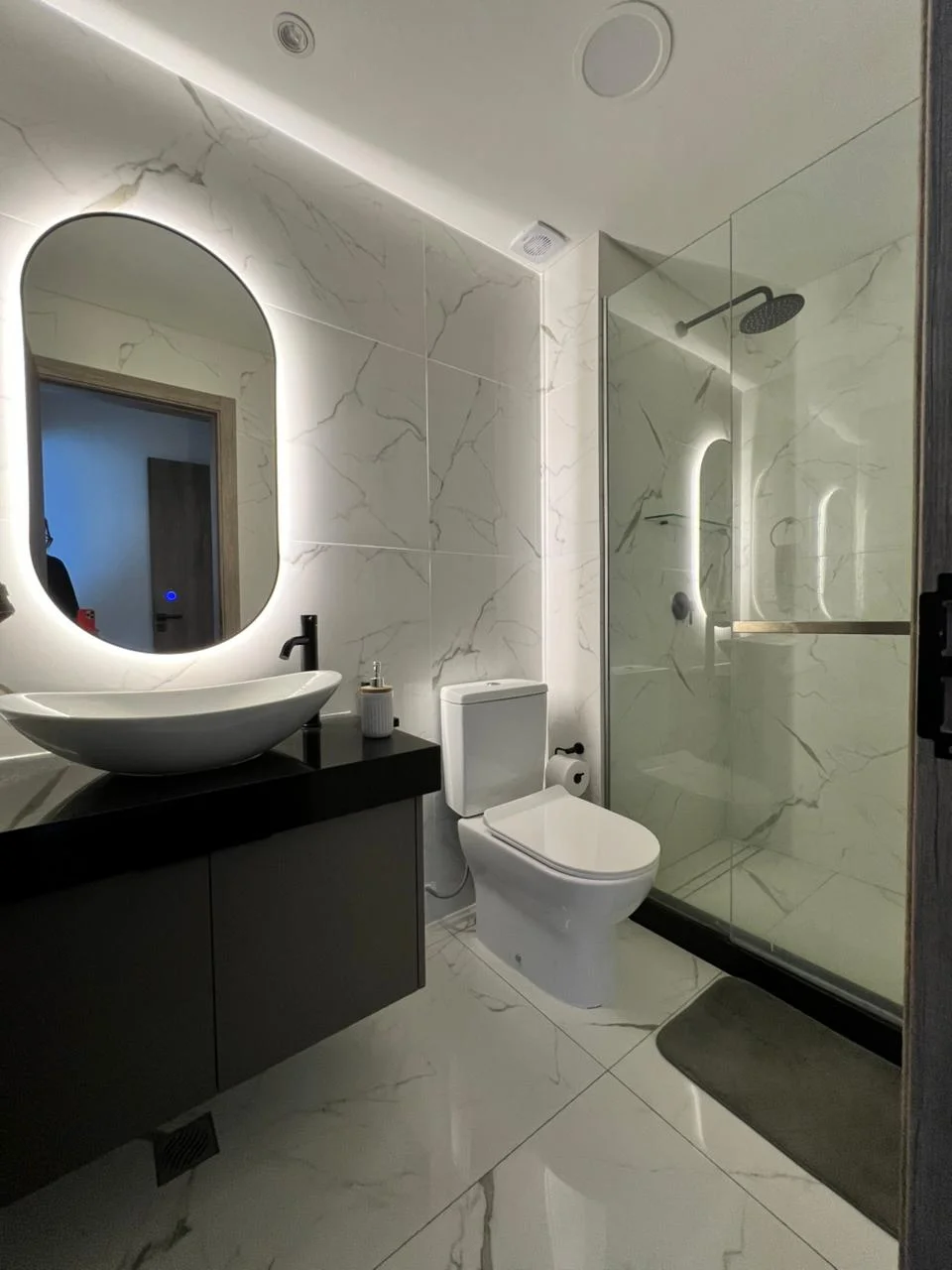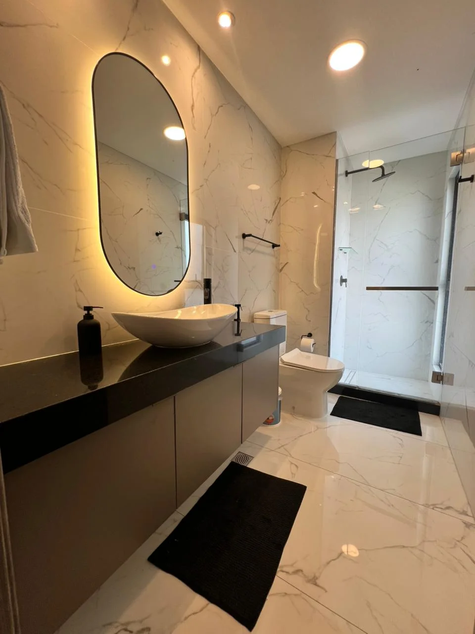 Todos los baños diseñados con finos acabados, hermosos espejos y elegante grifería.