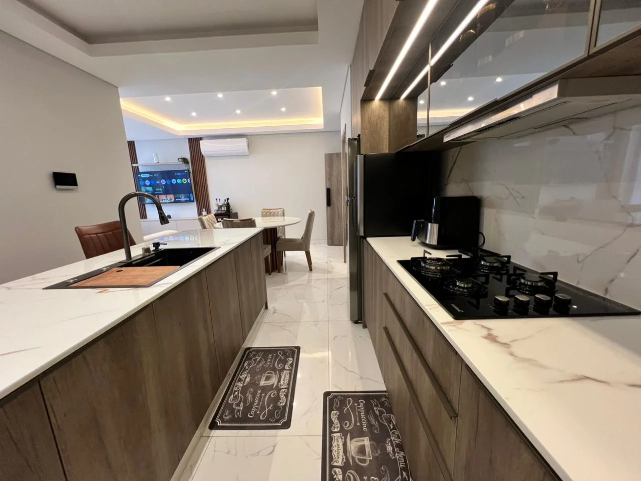 Integrada con Isla con mesón y equipada, mueblería premium, hornos empotrados, Cocina empotrada, luces led,