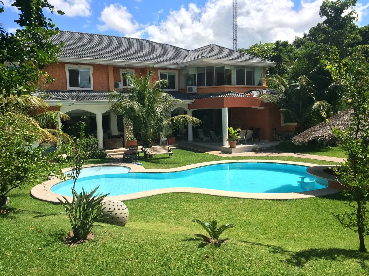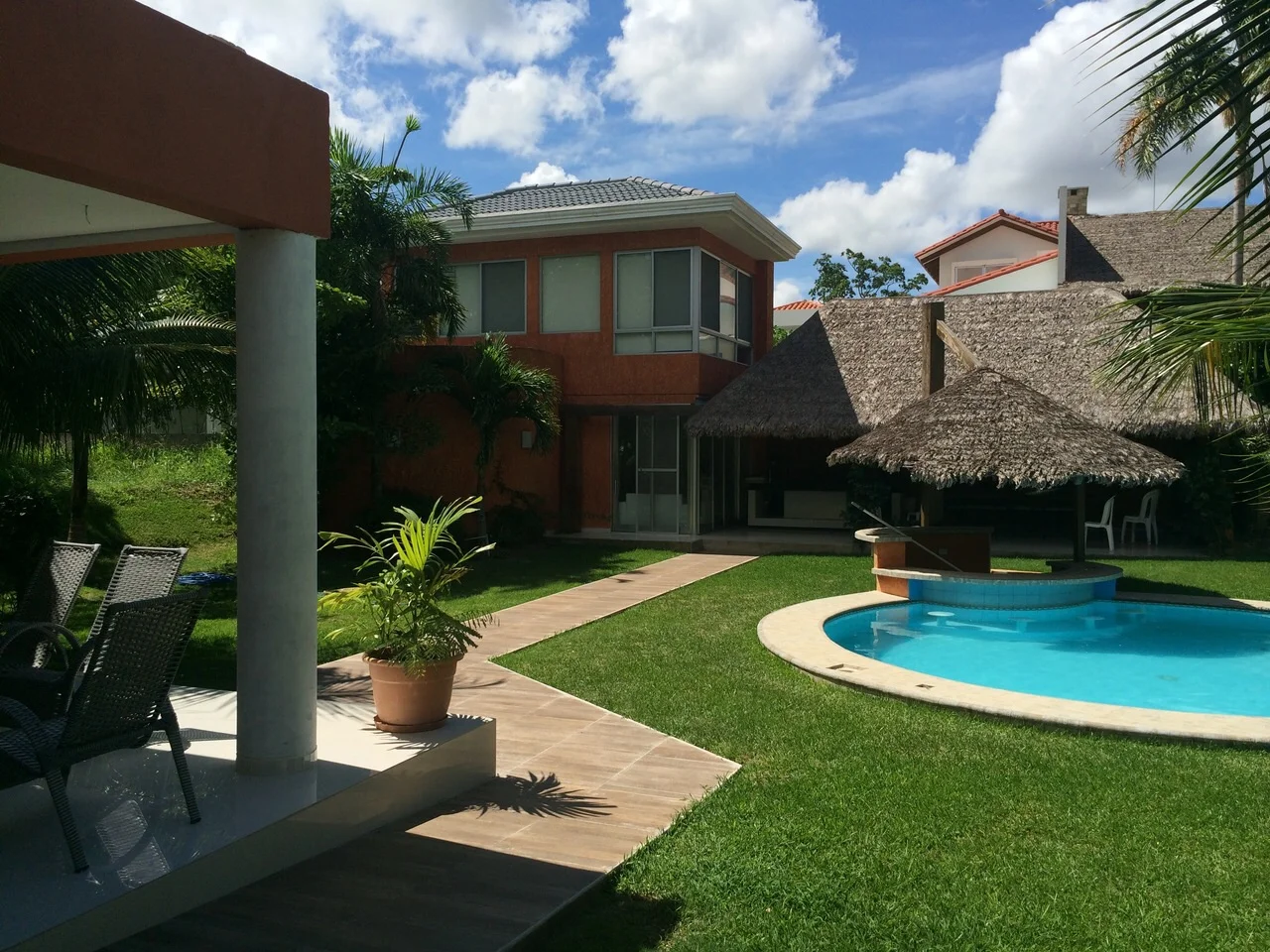 LIVING-COMEDOR 80M2 MASTER SUITE 1 2 ESCRITORIOS LAVANDERIA COCINA AMPLIA AMOBLADA BAÑO DE VISITA AMPLIO JARDIN CON PISCINA Y BAR INCORPORADO DEPTO PARA VISITAS CHURRASQUERA GARAGE PARA 12 VEHICULOS