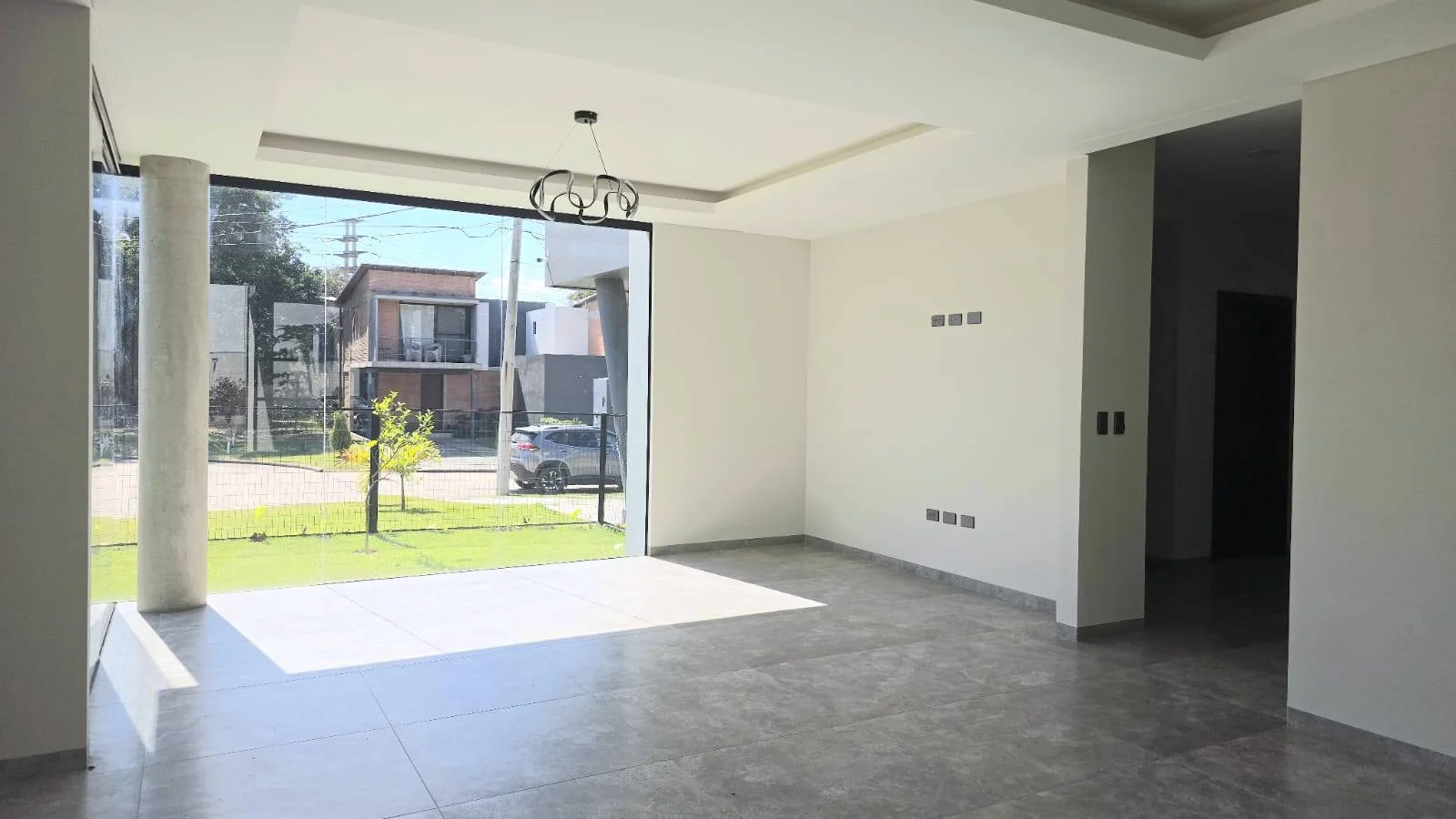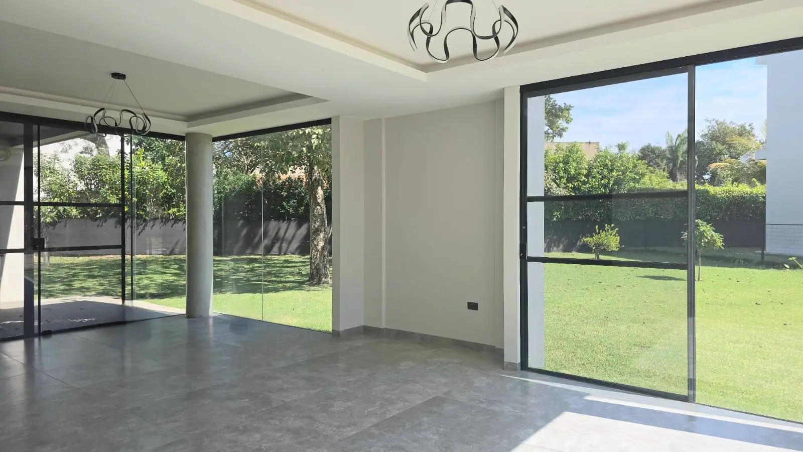 Estar familiar + galería con vista al jardín