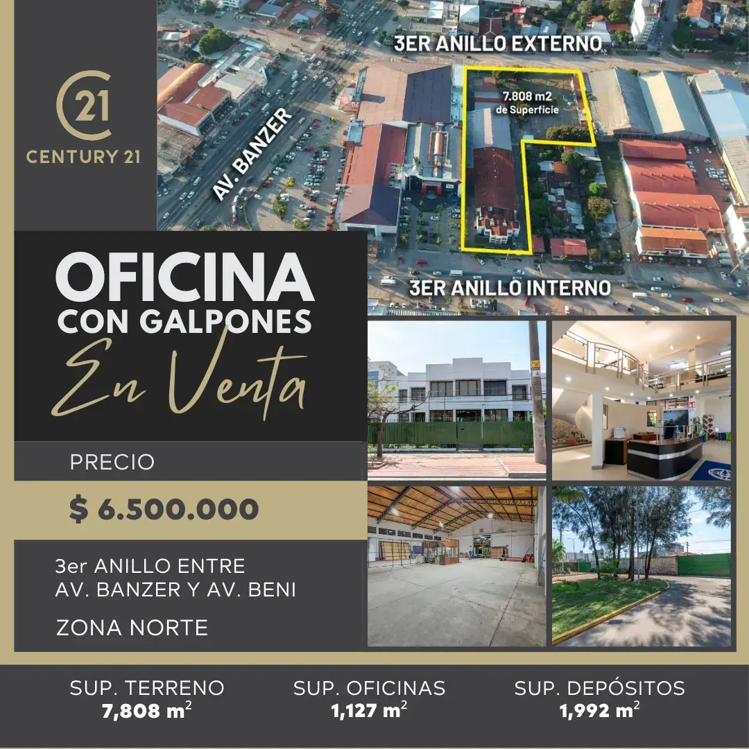 OFICINAS CON GALPONES EN VENTA Zona Norte, Santa Cruz.