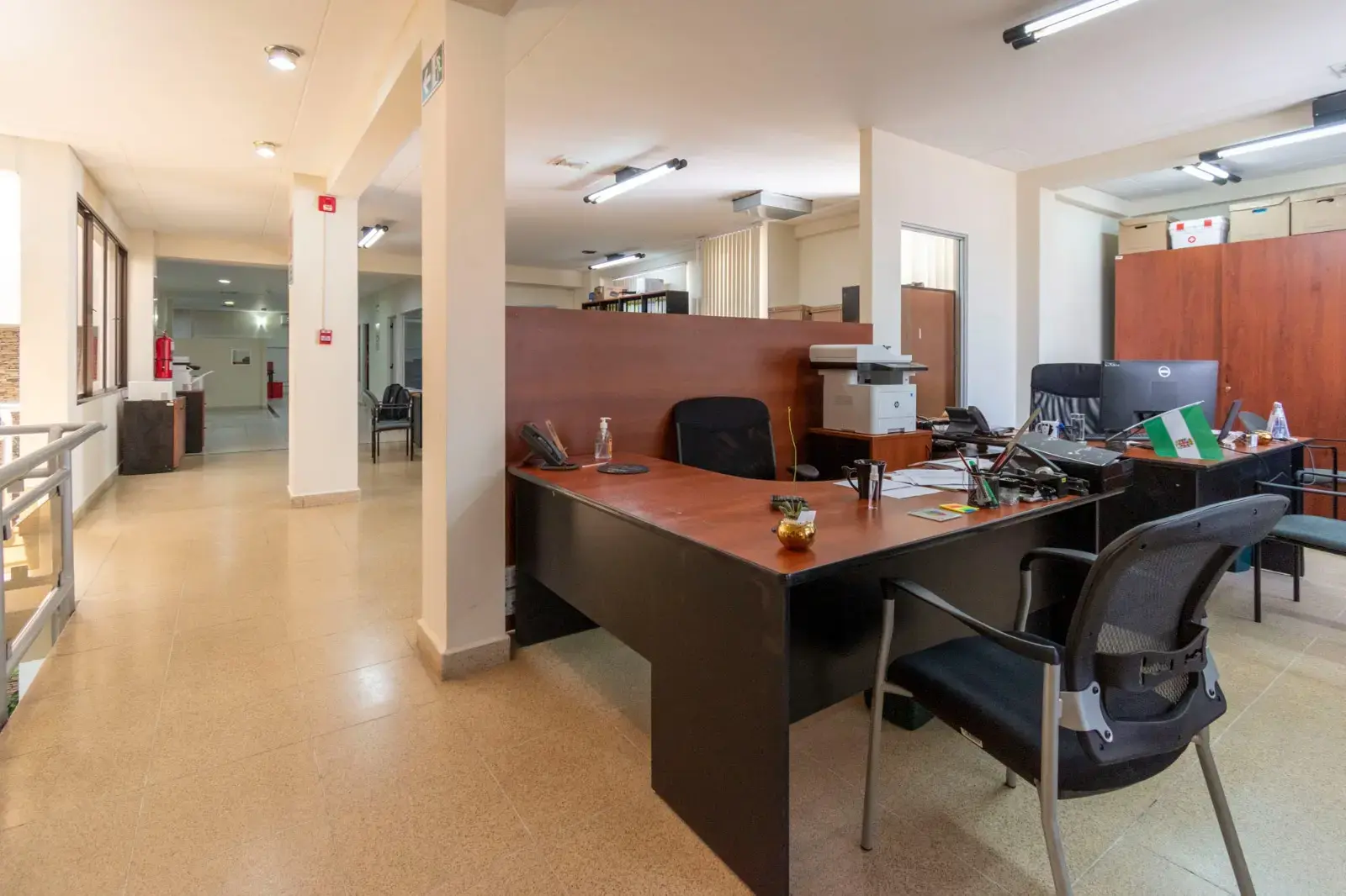 - Sup. Edif. de oficinas:1,061 m² de Oficinas, que incluye: oficinas ejecutivas, gerenciales, salas de reuniones, recepción, sala de espera, baños, ascensor, comedor, despensa, cocina, etc.
