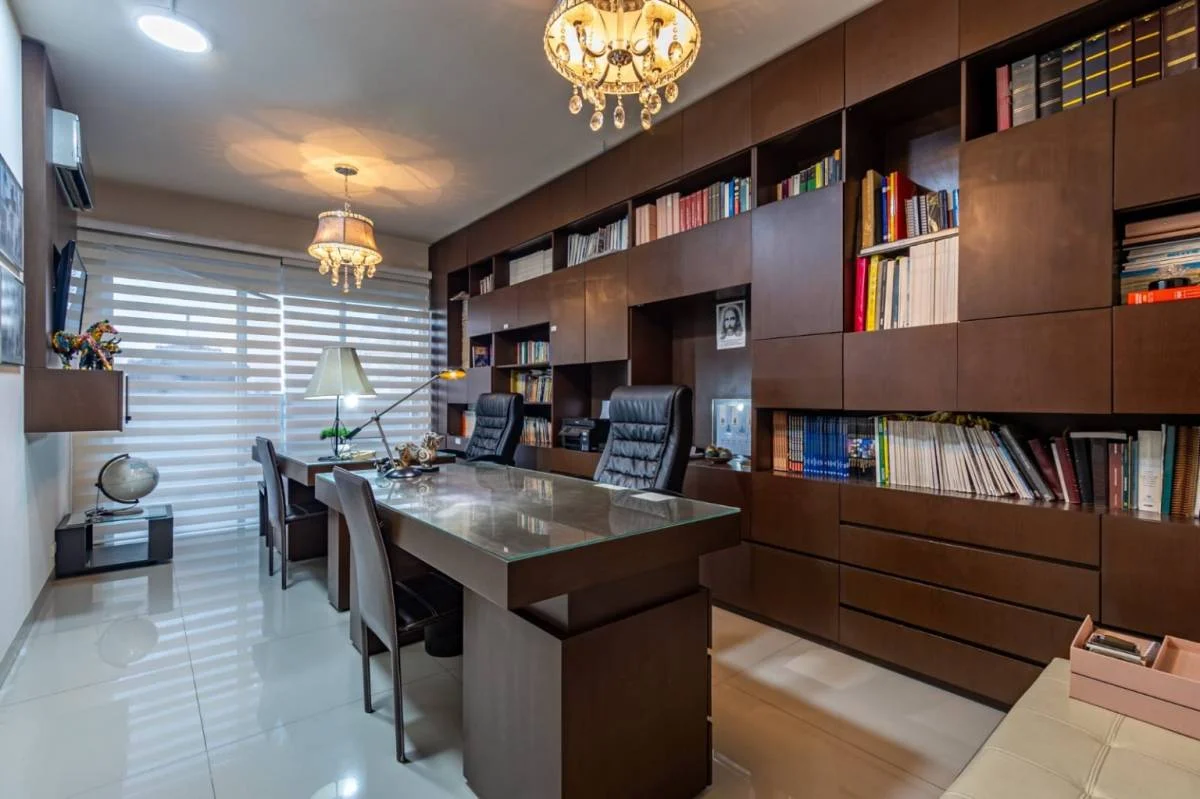 Escritorio c/ muebles empotrados y balcón