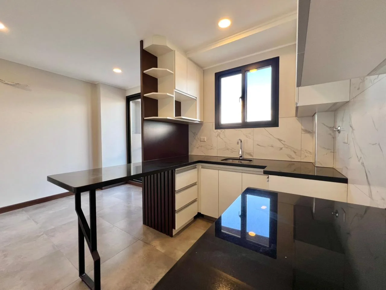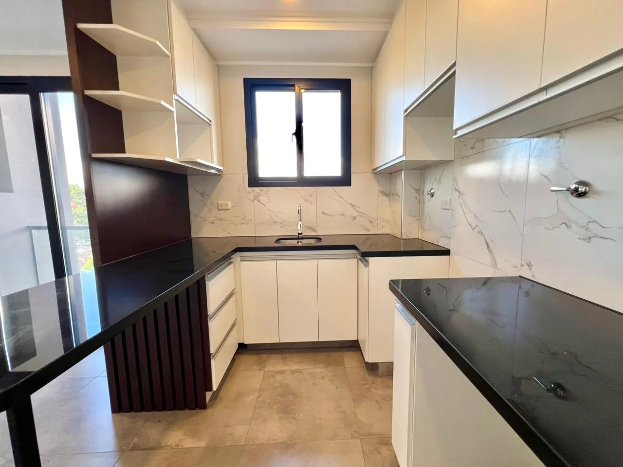 - Cocina estilo americana amoblada con cajoneria alta y baja
