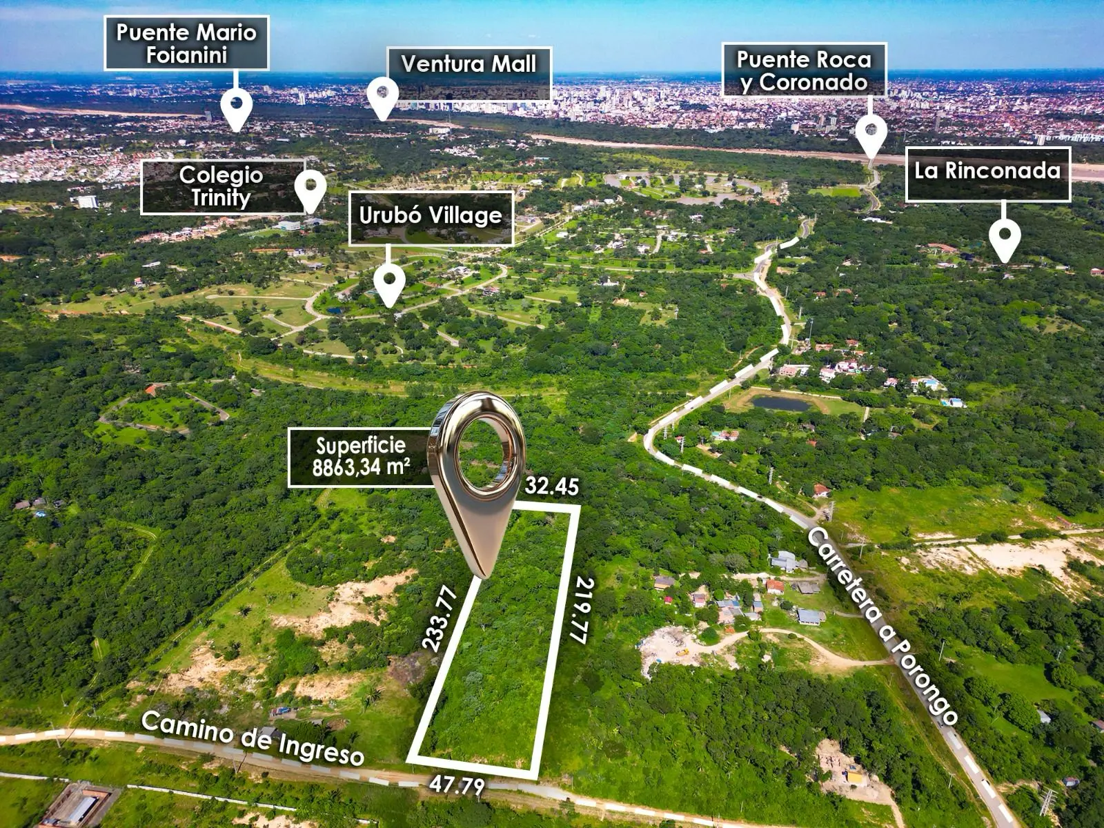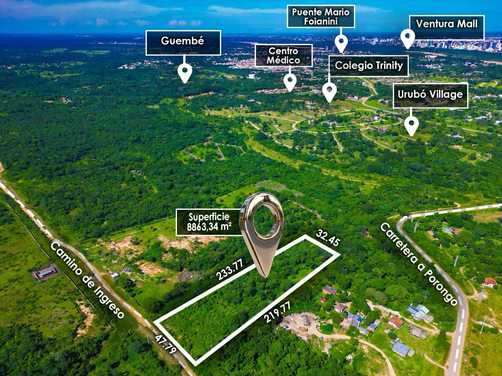 Terreno en venta ubicado en Urubó carretera a Porongo, una de las zonas con mayor proyección y plusvalía de Santa Cruz.