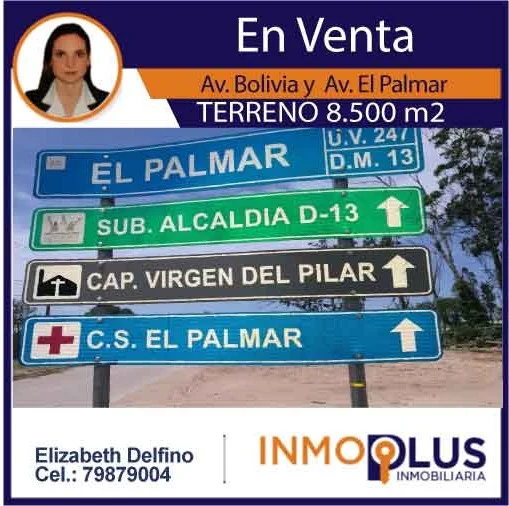 TERRENO en venta, en esquina en Avenida Bolivia y El Palmar, con todos los papeles al día, excelente negocio para urbanizar, para empresas o industrias, a $us. 70m2.