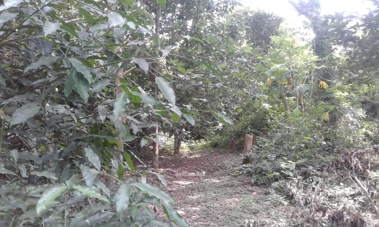 Integración del norte, frente a satélite norte entrando por mercado monumental, 414m2 en esquina, hay varios árboles frutales: palta, limón, manga.
