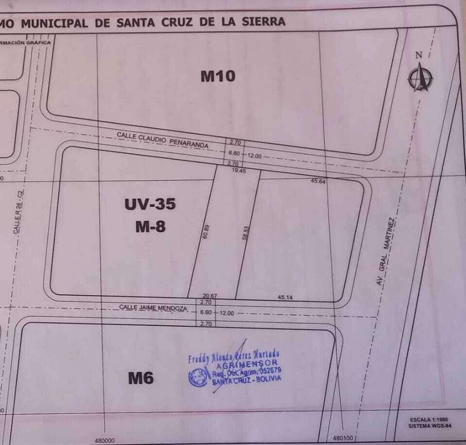 Terreno ideal para inversores y/o desarrolladores inmobiliarios. 1200 m2 en zona 100 % residencial y de gran demanda. Con salida a 2 calles: Claudio PeÑaranda y Jaime Roman. 20 metros de frente a cada lado. Perfecto para proyectos habitacionales o mixtos.