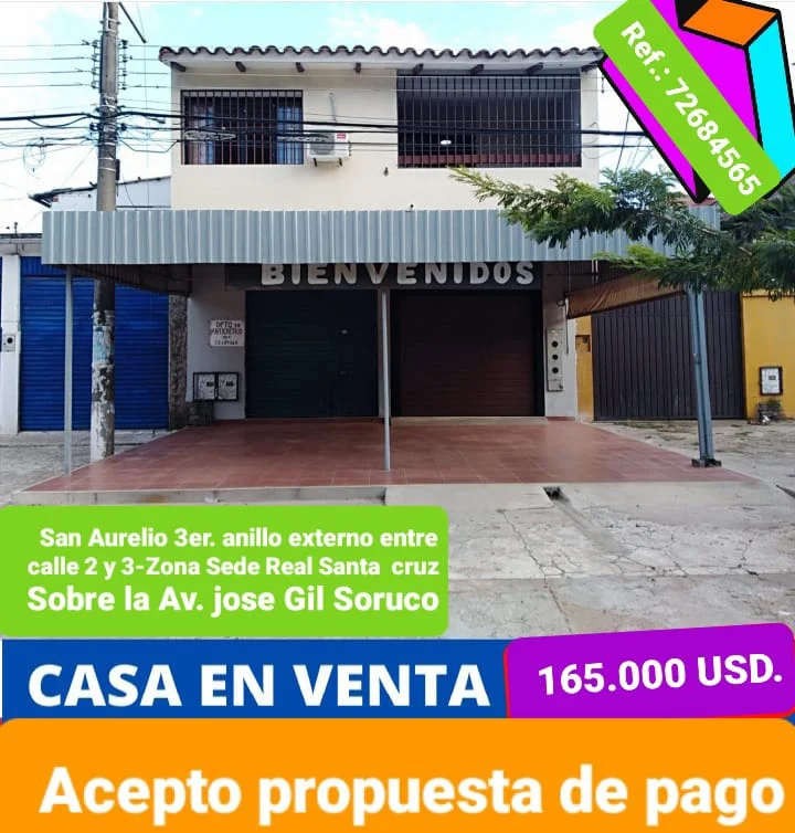 ????REMATE DE Casa ubicada SOBRE LA AVENIDA DEL 3er. anillo ext., Av/ San Aurelio, AL FRENTE DEL ESTADIO REAL SANTA CRUZ