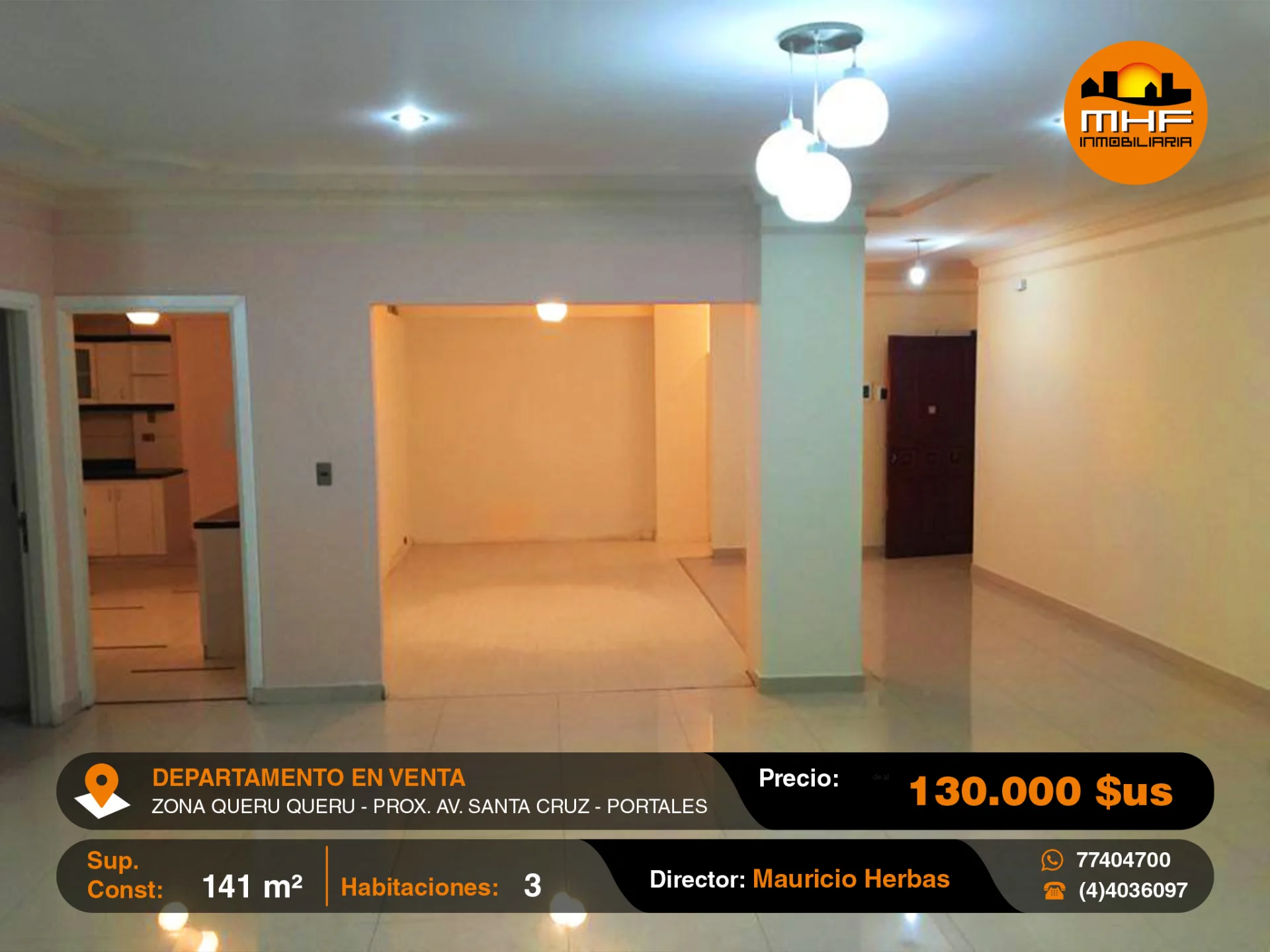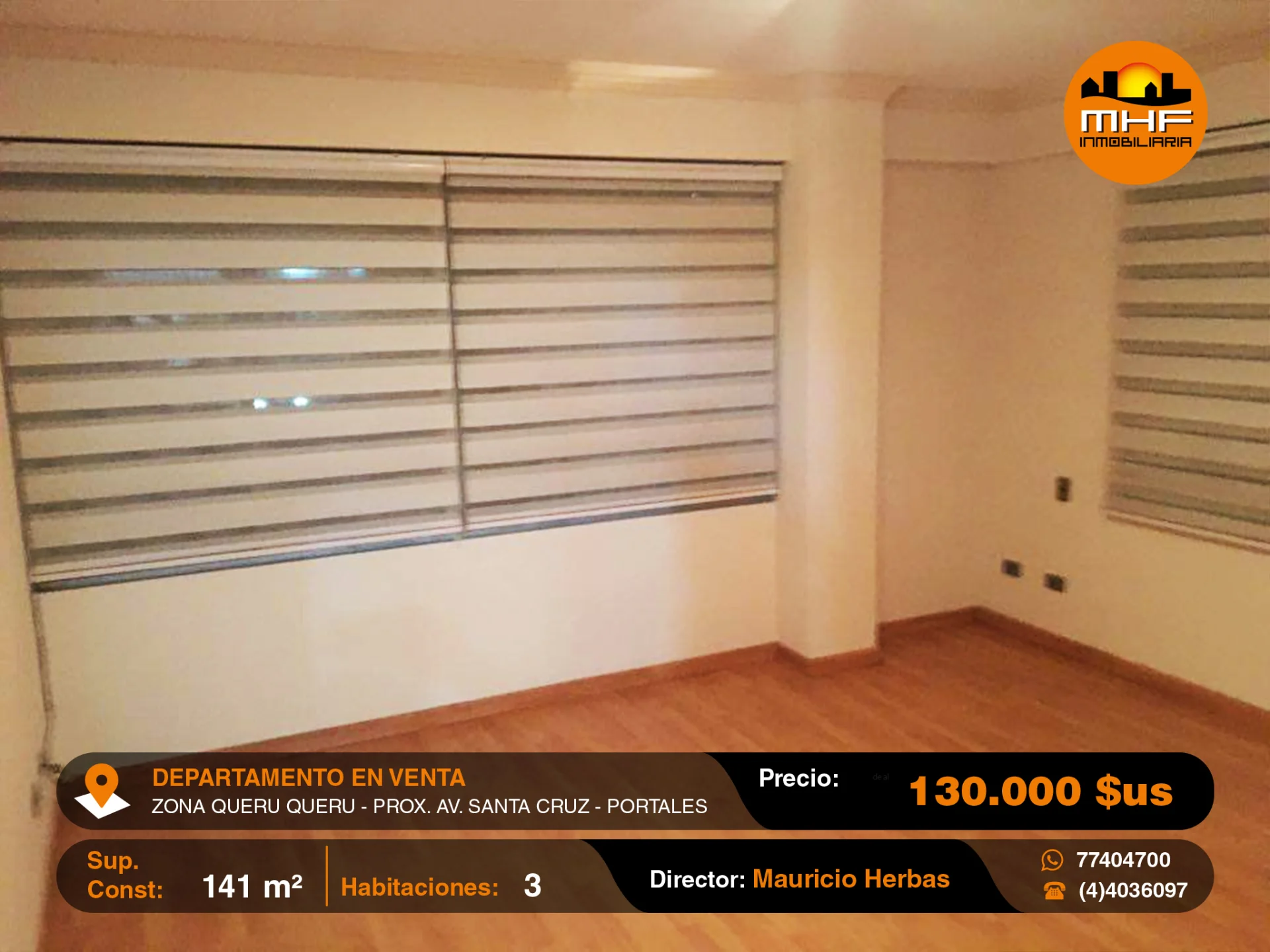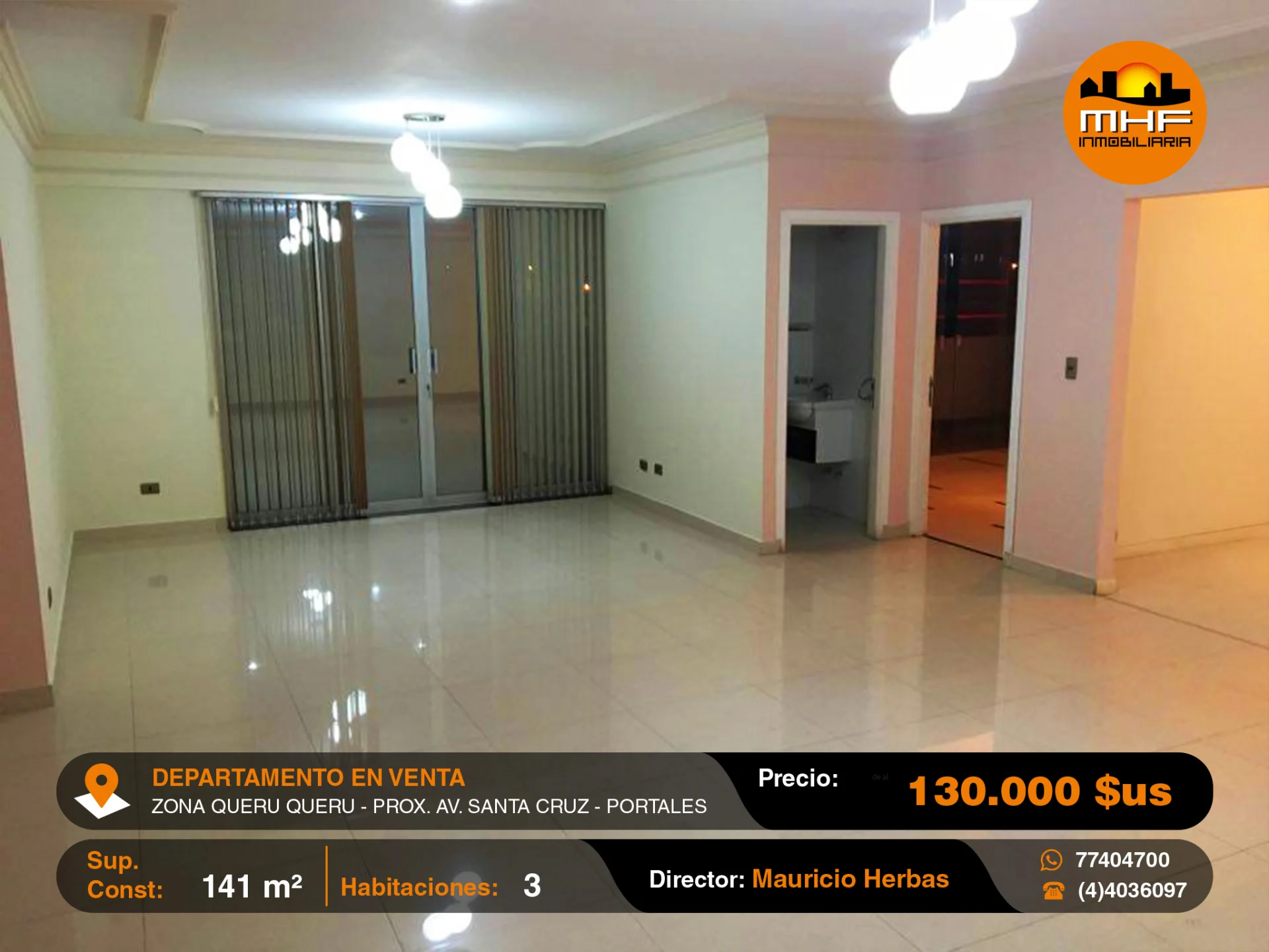 DEPARTAMENTO DE TRES DORMITORIOS EN EDIFICIO CON ASCENSOR, GARAJE DOBLE Y BAULERA, UBICADO EN LA MEJOR ZONA RESIDENCIAL Y DE OFICINAS QUERU QUERU PRÓXIMO AVENIDA SANTA CRUZ.