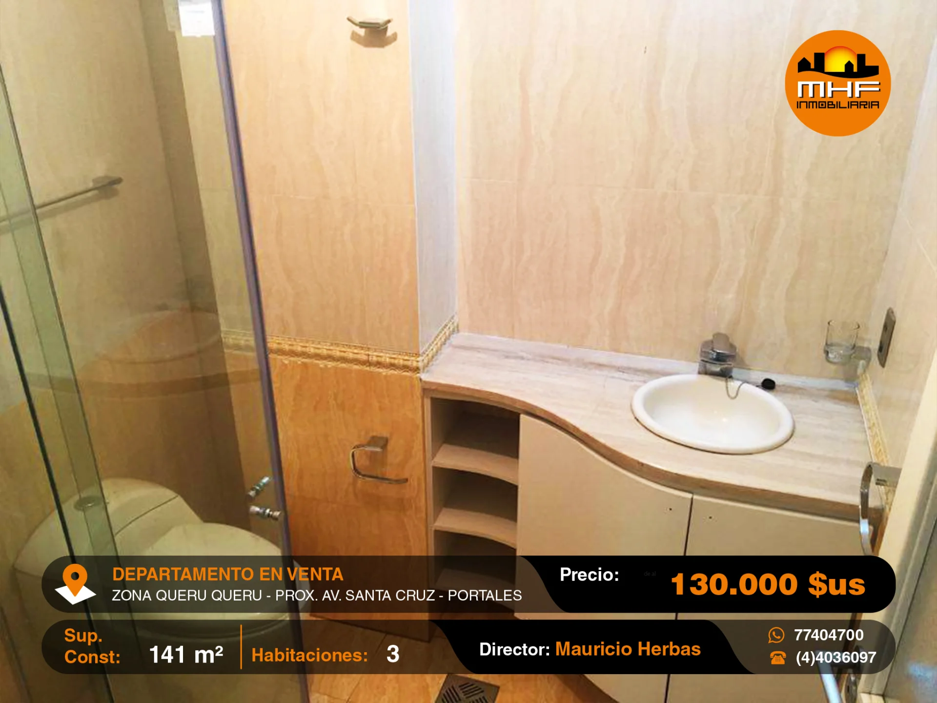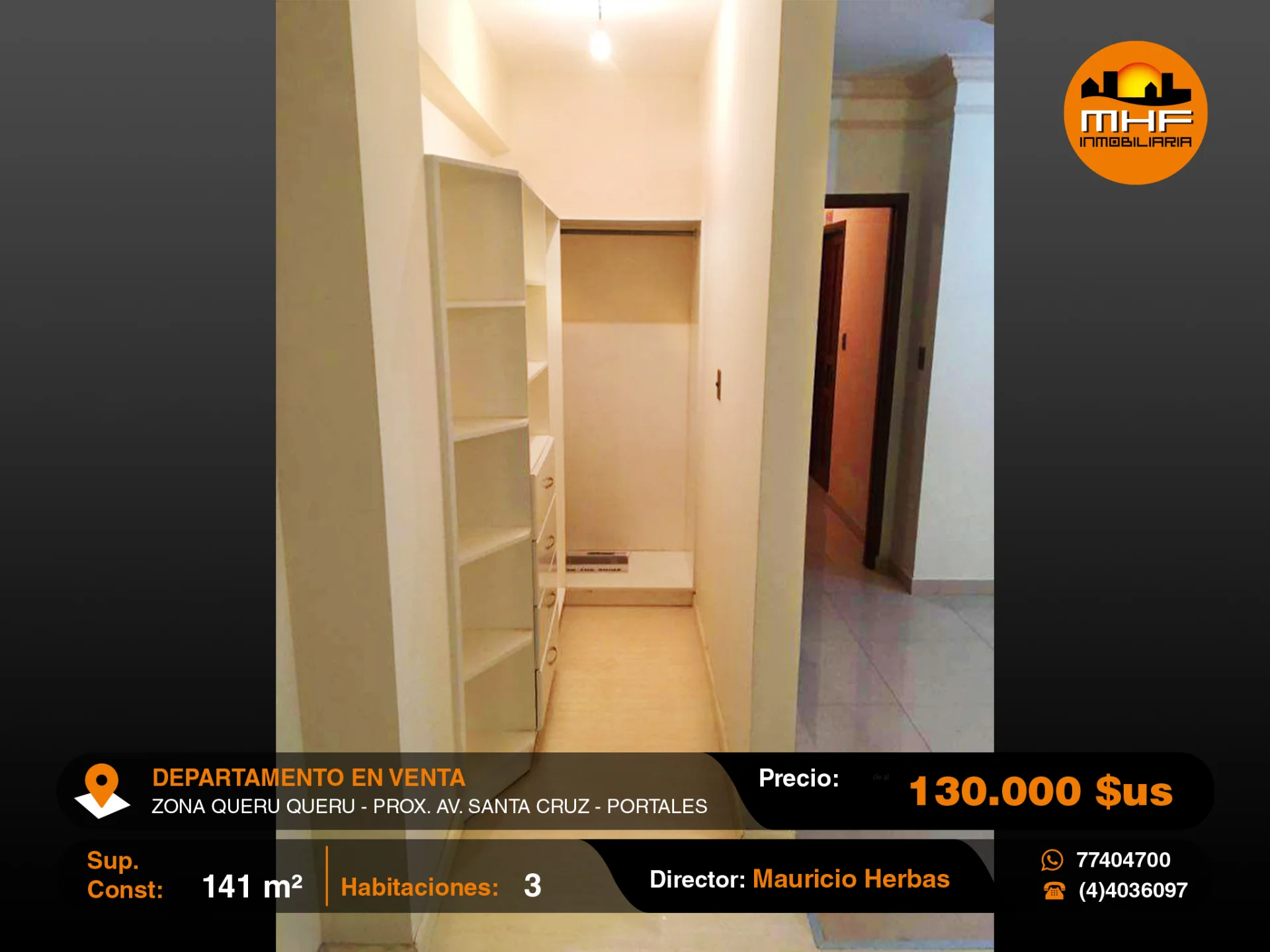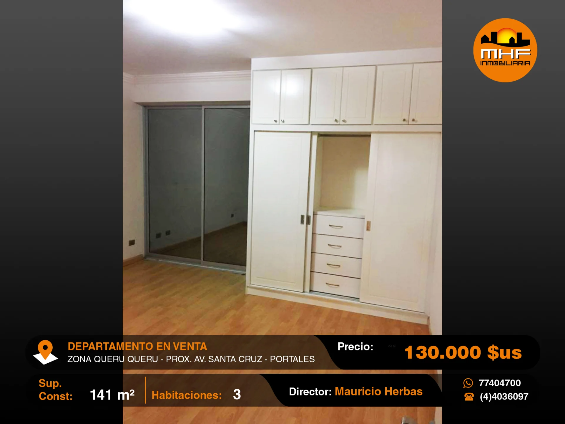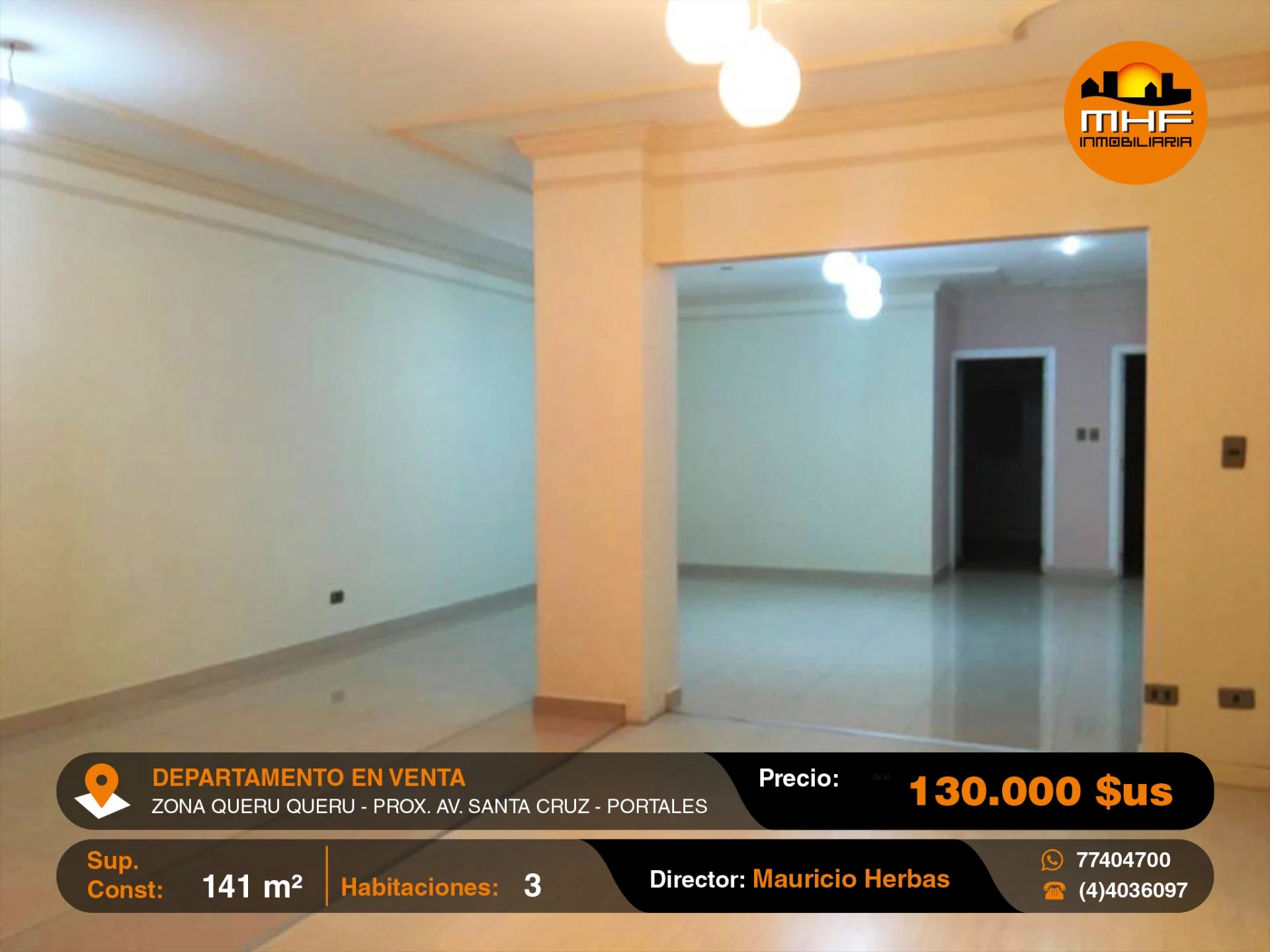 DEPARTAMENTO DE TRES DORMITORIOS EN EDIFICIO CON ASCENSOR, GARAJE DOBLE Y BAULERA, UBICADO EN LA MEJOR ZONA RESIDENCIAL Y DE OFICINAS QUERU QUERU PRÓXIMO AVENIDA SANTA CRUZ.