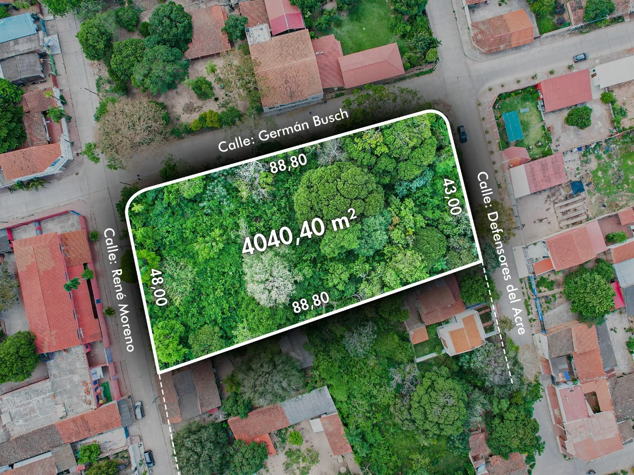 Terreno en venta a solo 4 cuadras de la Plaza Principal de Cotoca. Precio muy por debajo del valor de la zona y avalúo. Son 4,040m2 Uso de Suelo Mixto. Precio de la zona y avalúo por encima de los 150$/m2, PRECIO DE VENTA EN OFERTA 80$/m2.