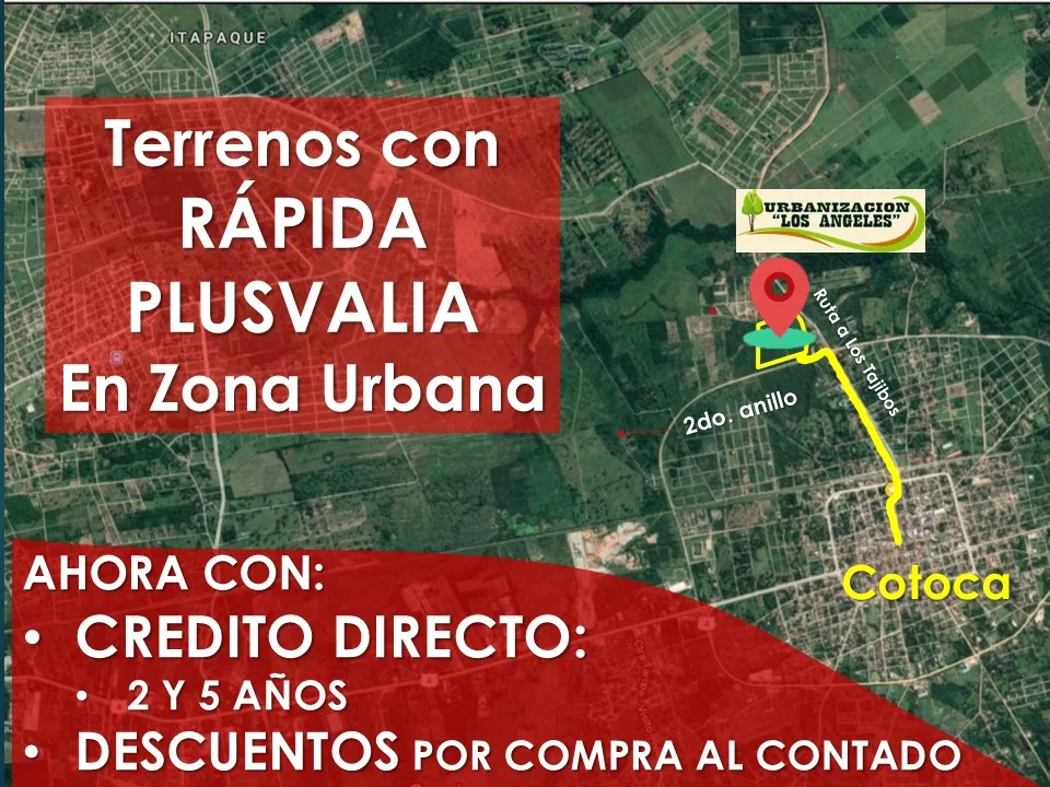 Urbanizacion Los Angeles, Cotoca, Terrenos De Rápida Y Alta Plusvalía