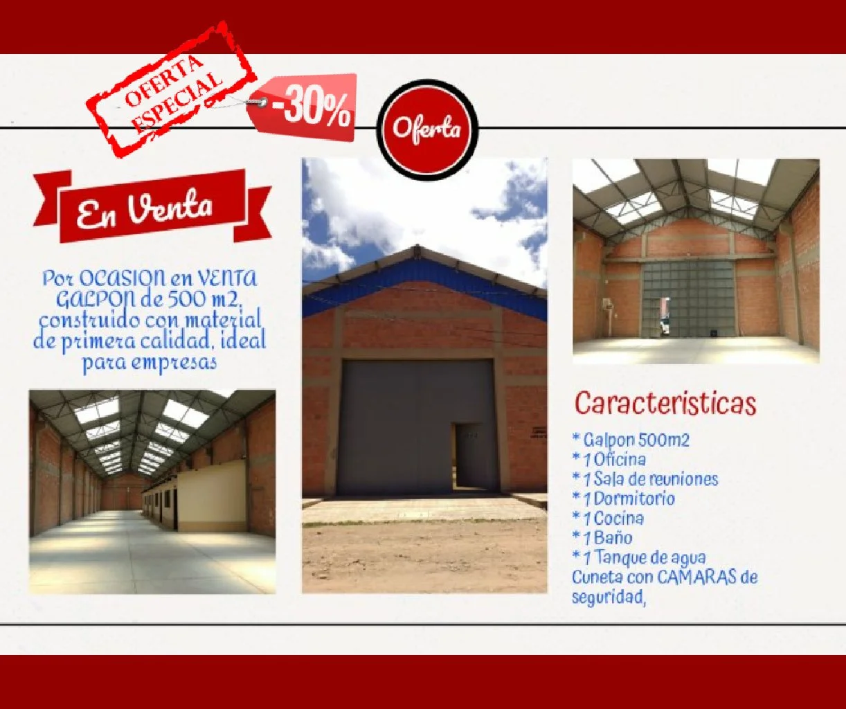 De ocacion venta de galpon a estrenar a pocos minutos de extranca senkata, cuenta con todos los documentos en orden, precio ofertable