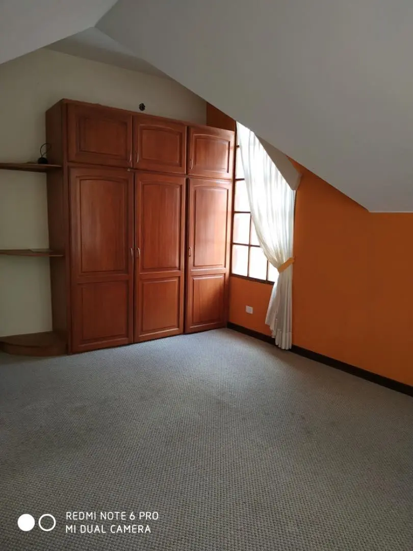 Hermosa casa de dos pisos muy soleada. Cuenta con parrillero, jardín y dependencias de servicio. Tiene. 3 dormitorios uno en suite todos alfombrados más un escritorio.