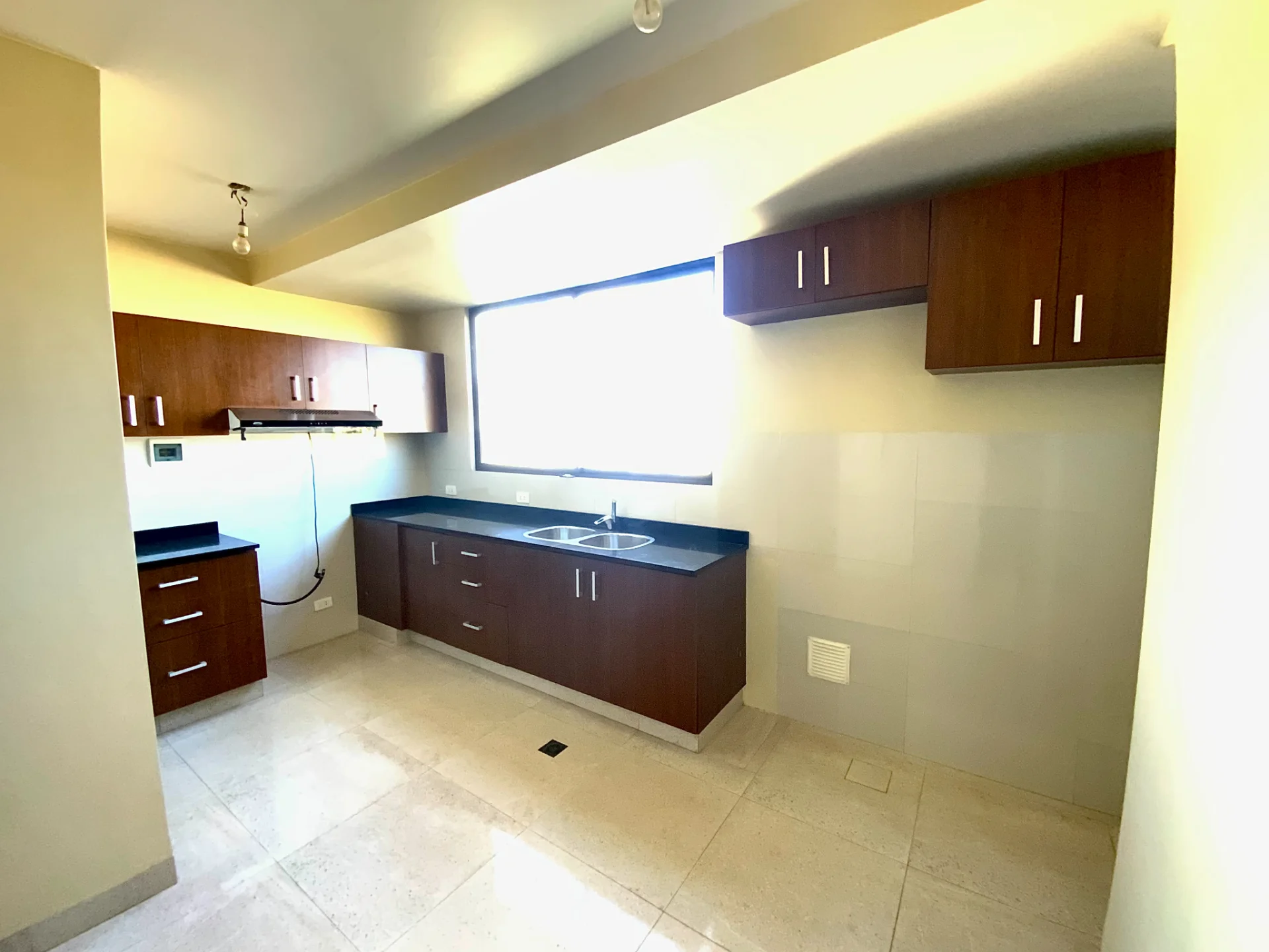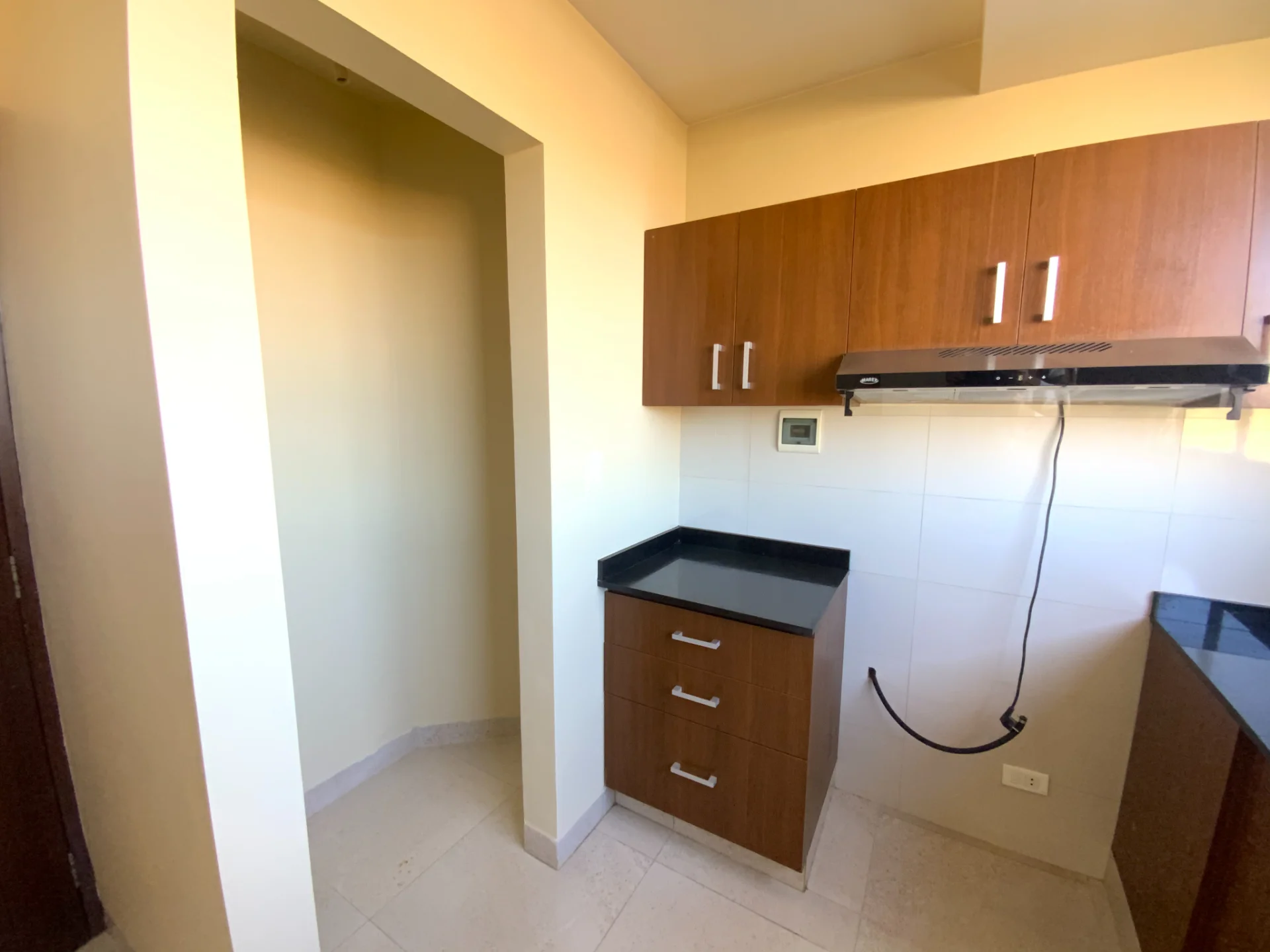 - Cocina cerrada con mueblería alta y baja, mesones de granito chiquitano y extractor incluido