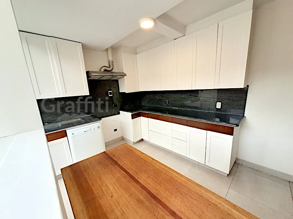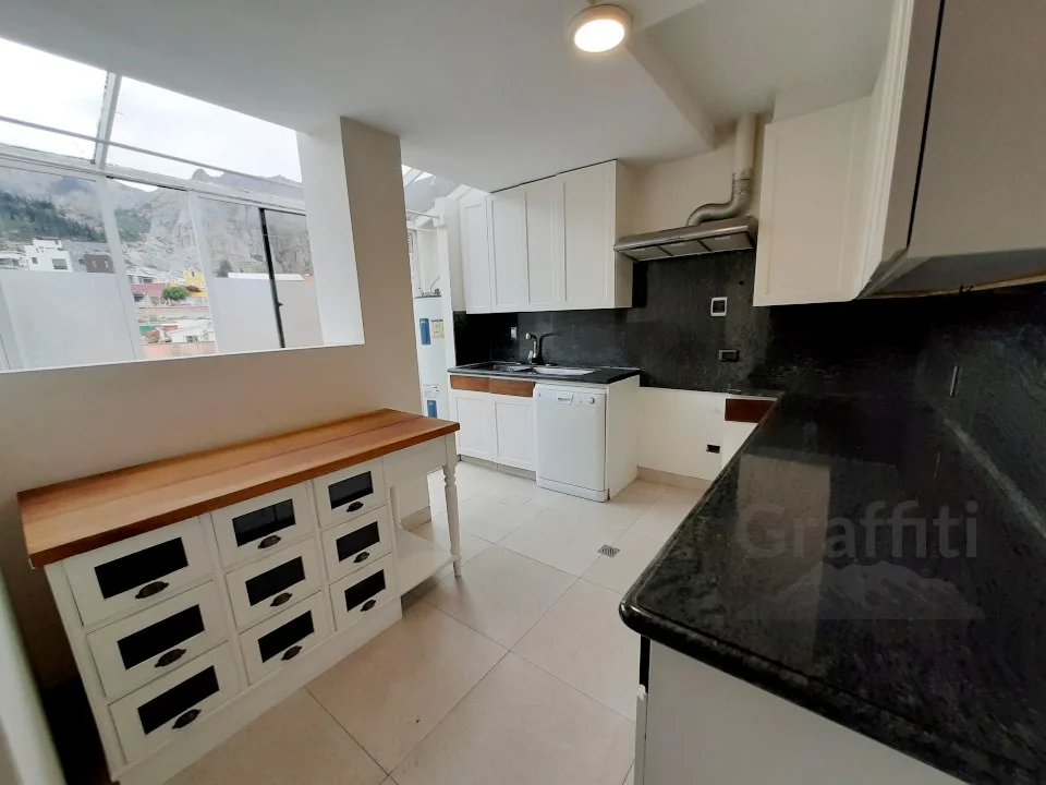 Hermoso departamento amplio y soleado e iluminado con todas las comodidades. Material de primera, puertas de madera, mesones de granito y piso de madera. Renovado el 2015.