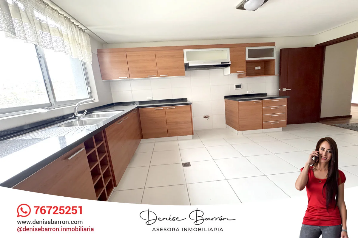 - Cocina con cajonería alta y baja, gas domiciliario, mesones de granito