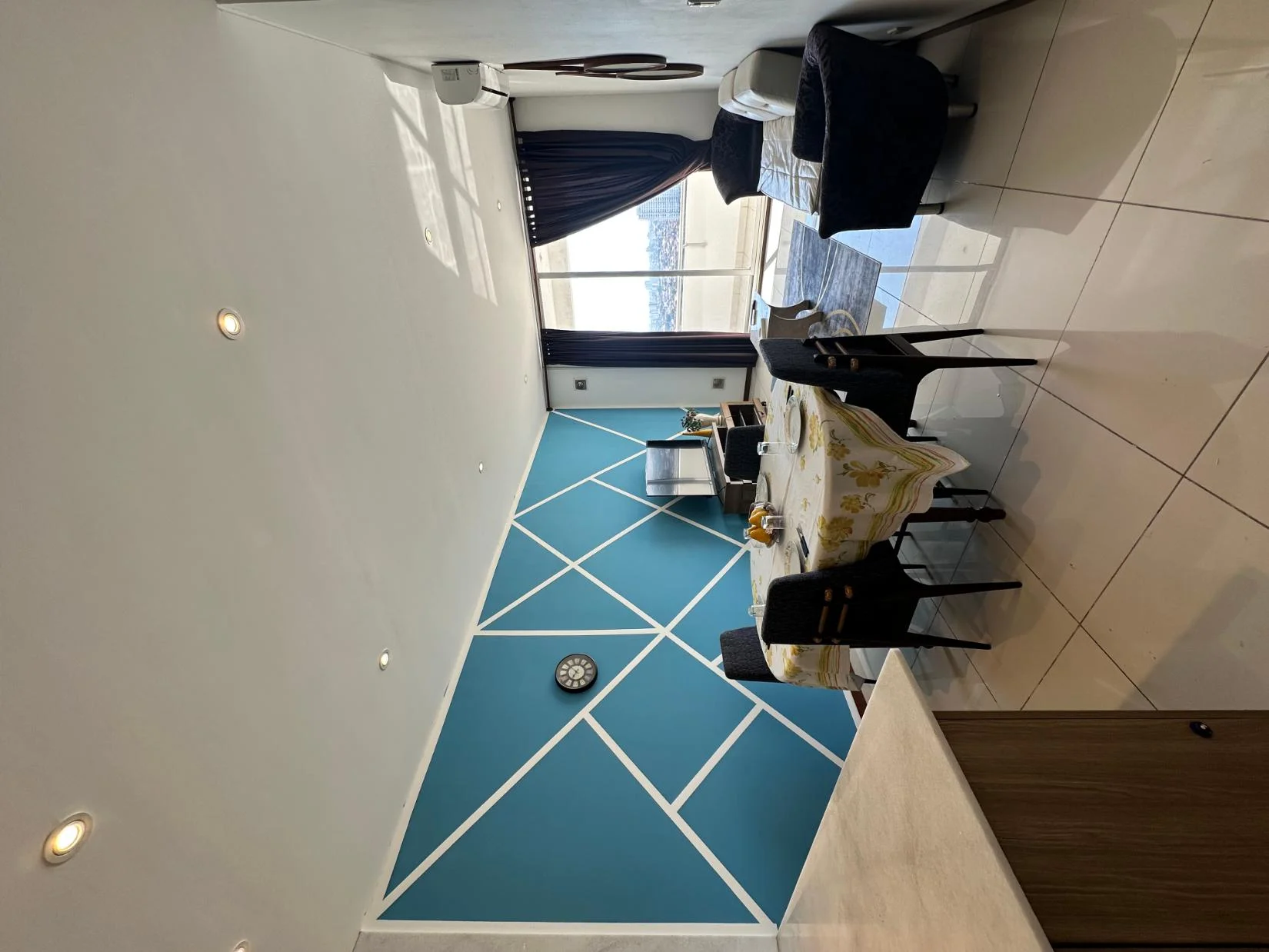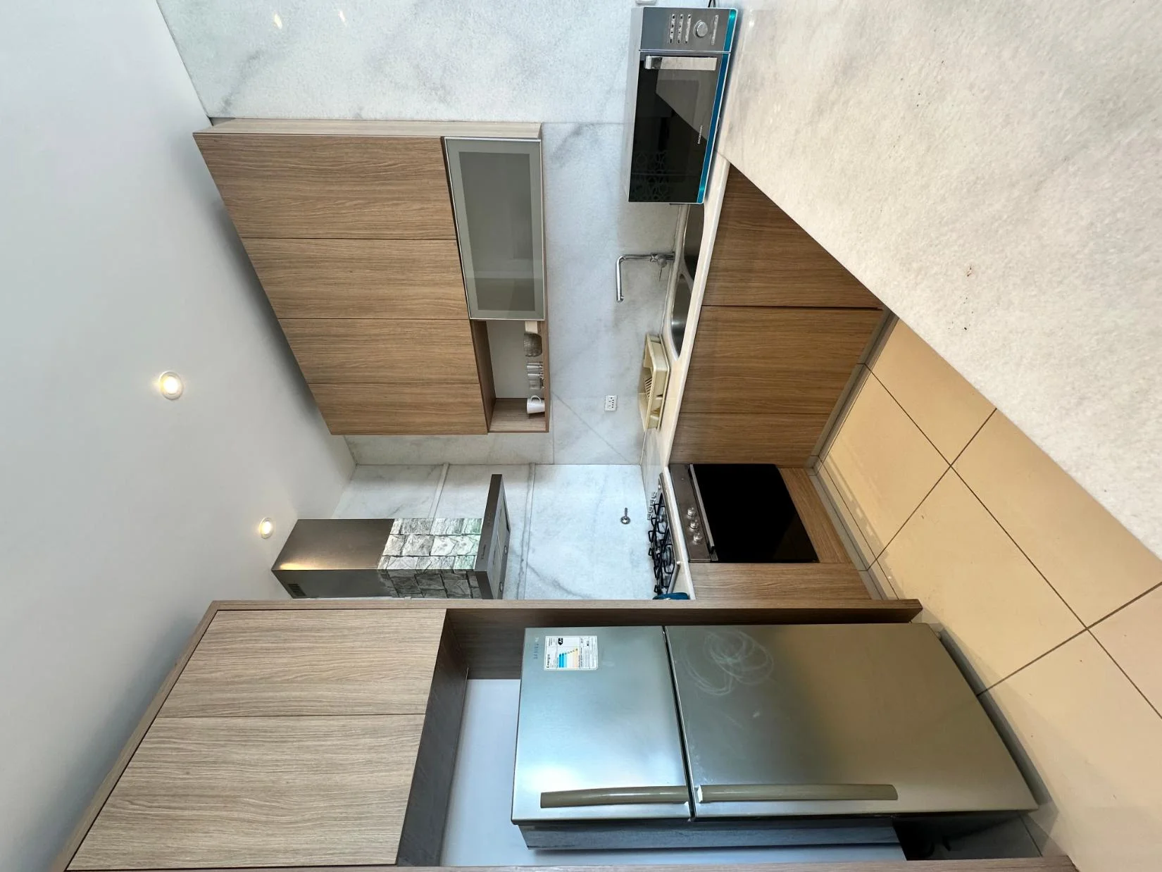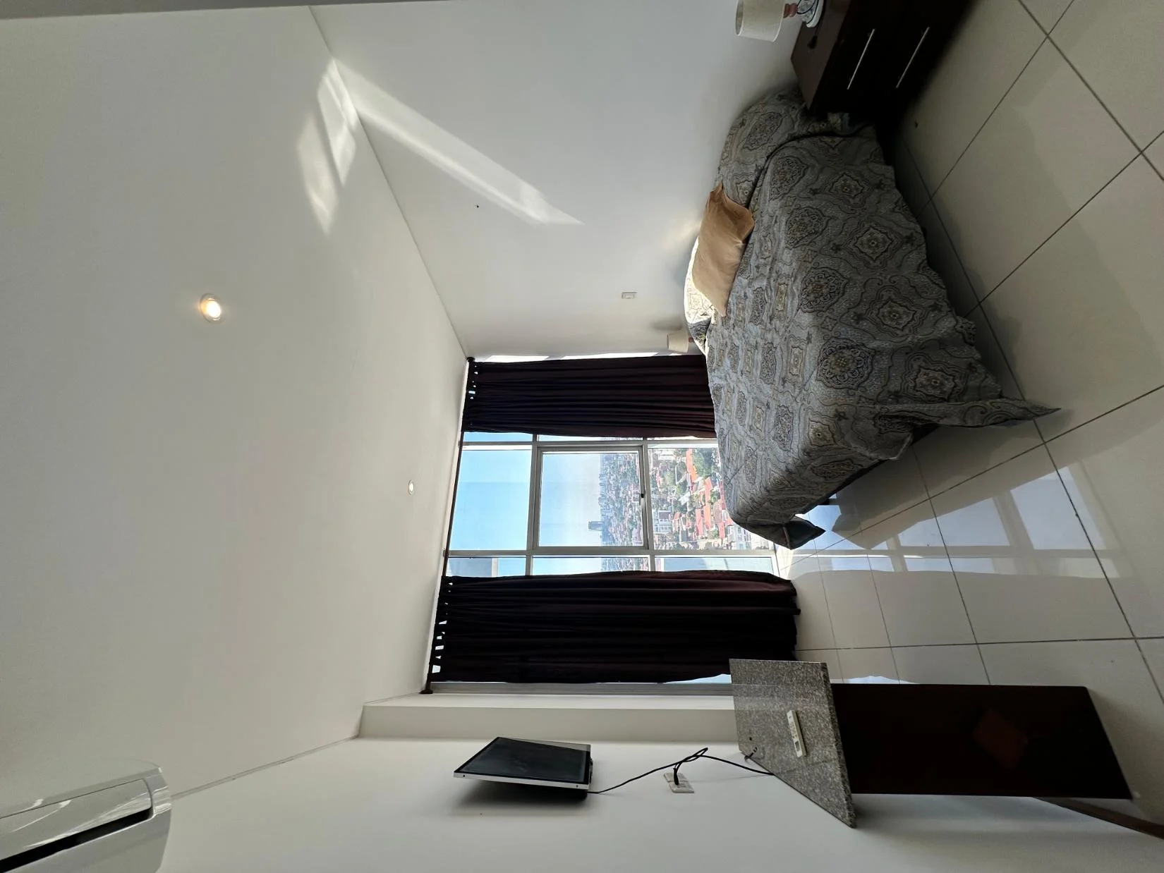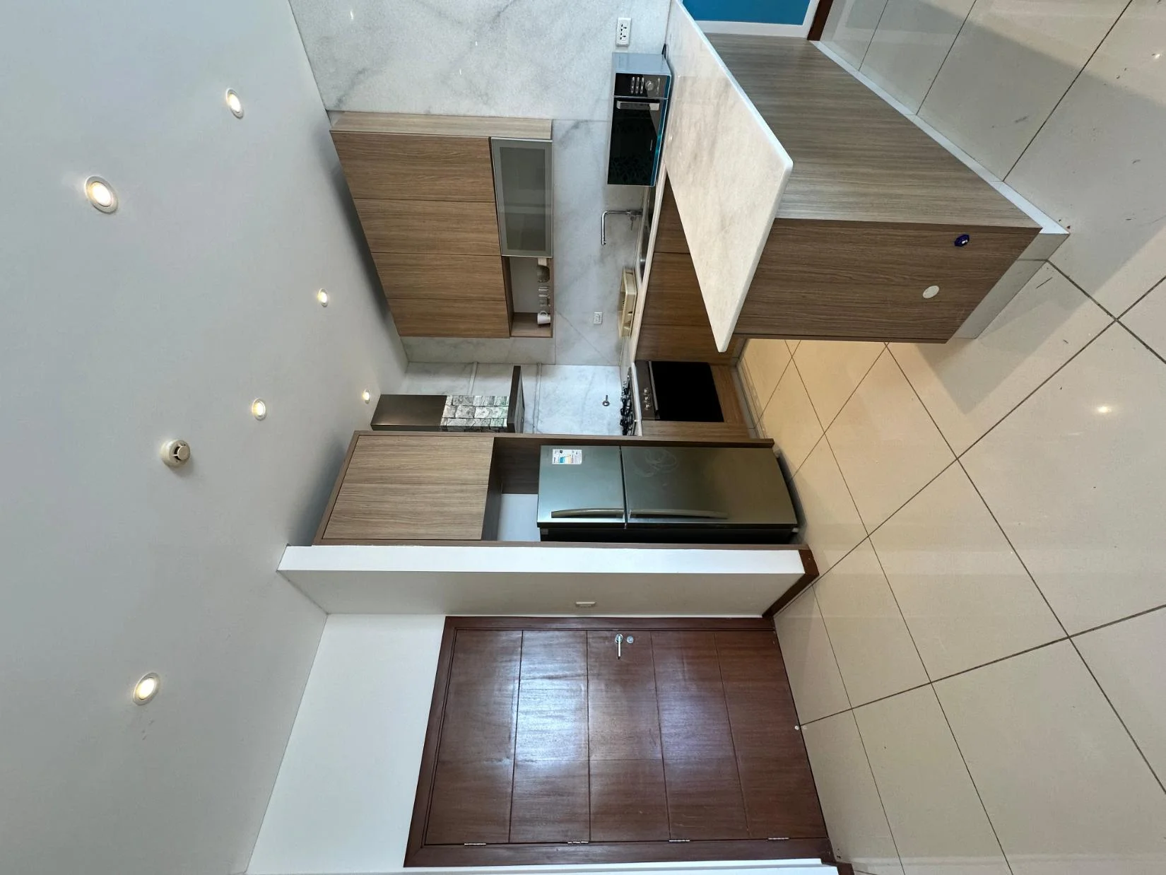 - Living cocina comedor integrada con acceso a balcón y hermosa vista desde el piso 17. La cocina está equipada con mesón desayunador en isla, heladera Samsung, horno eléctrico Glem, cocina encimera de 4 hornallas, extractor Electrolux, muebles de cocina superior e inferior, microondas Brügmann. Cuenta con intercomunicador, gas domiciliario, mesa comedor, cortinas, aire acondicionado, TV Sure de 55 pulgadas.