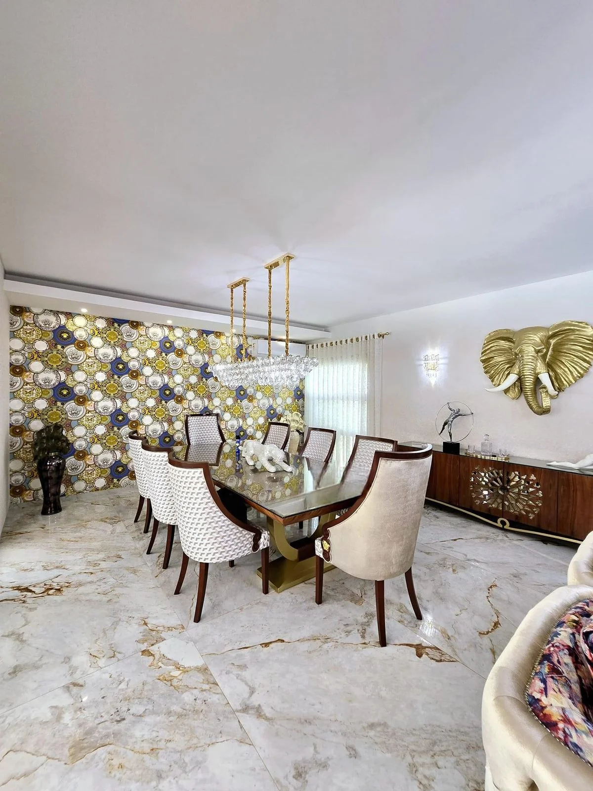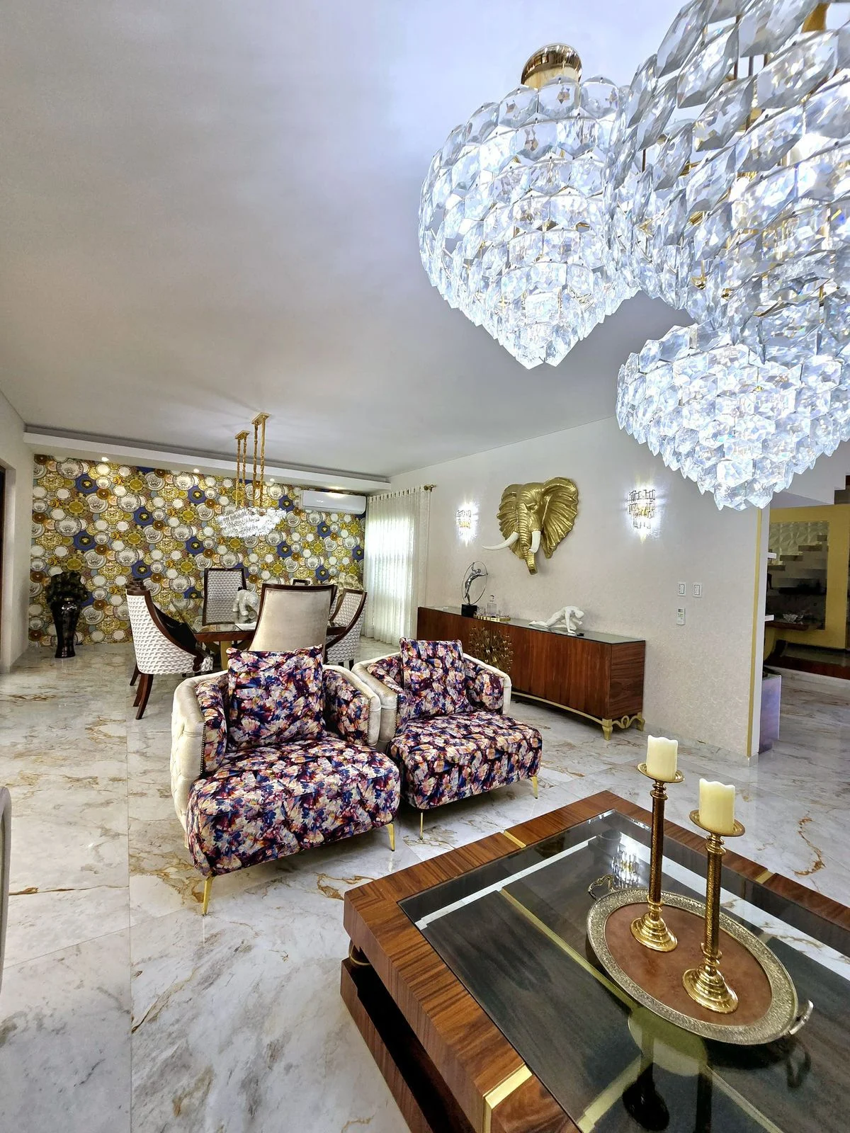 • Cocina Moderna: Totalmente equipada con isla de mármol y vajillas de porcelana.