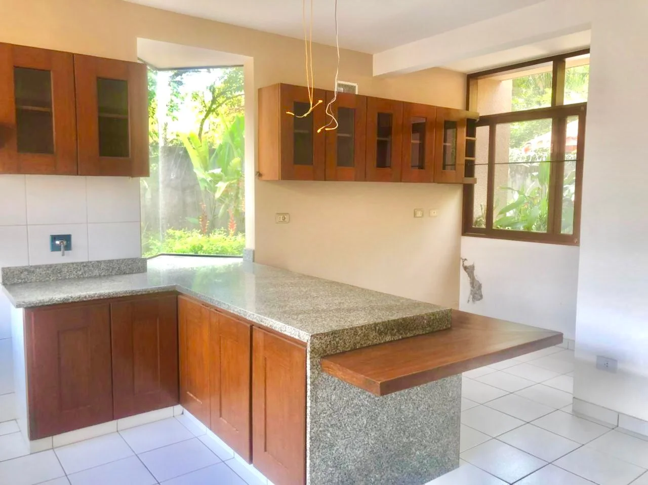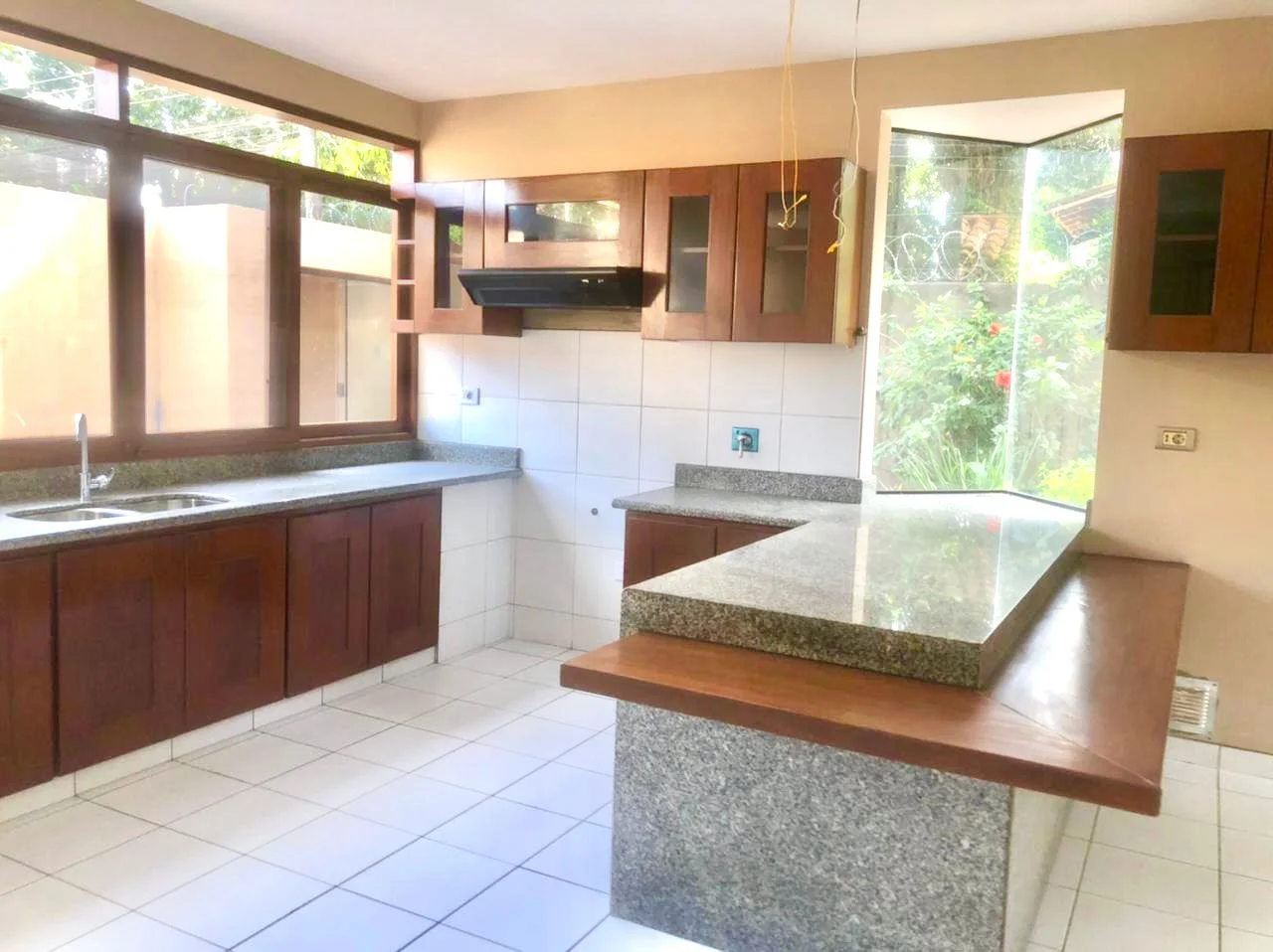 * cocina amoblada con muebles de madera altos y bajos, campana estractora de aire.