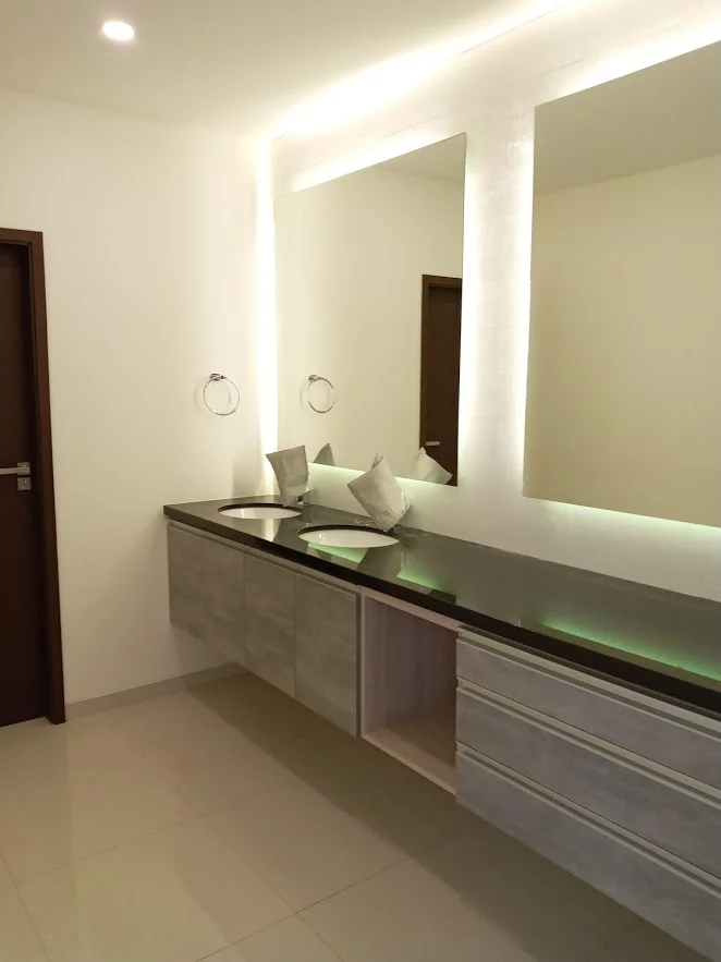 con mesón de granito y lavamanos