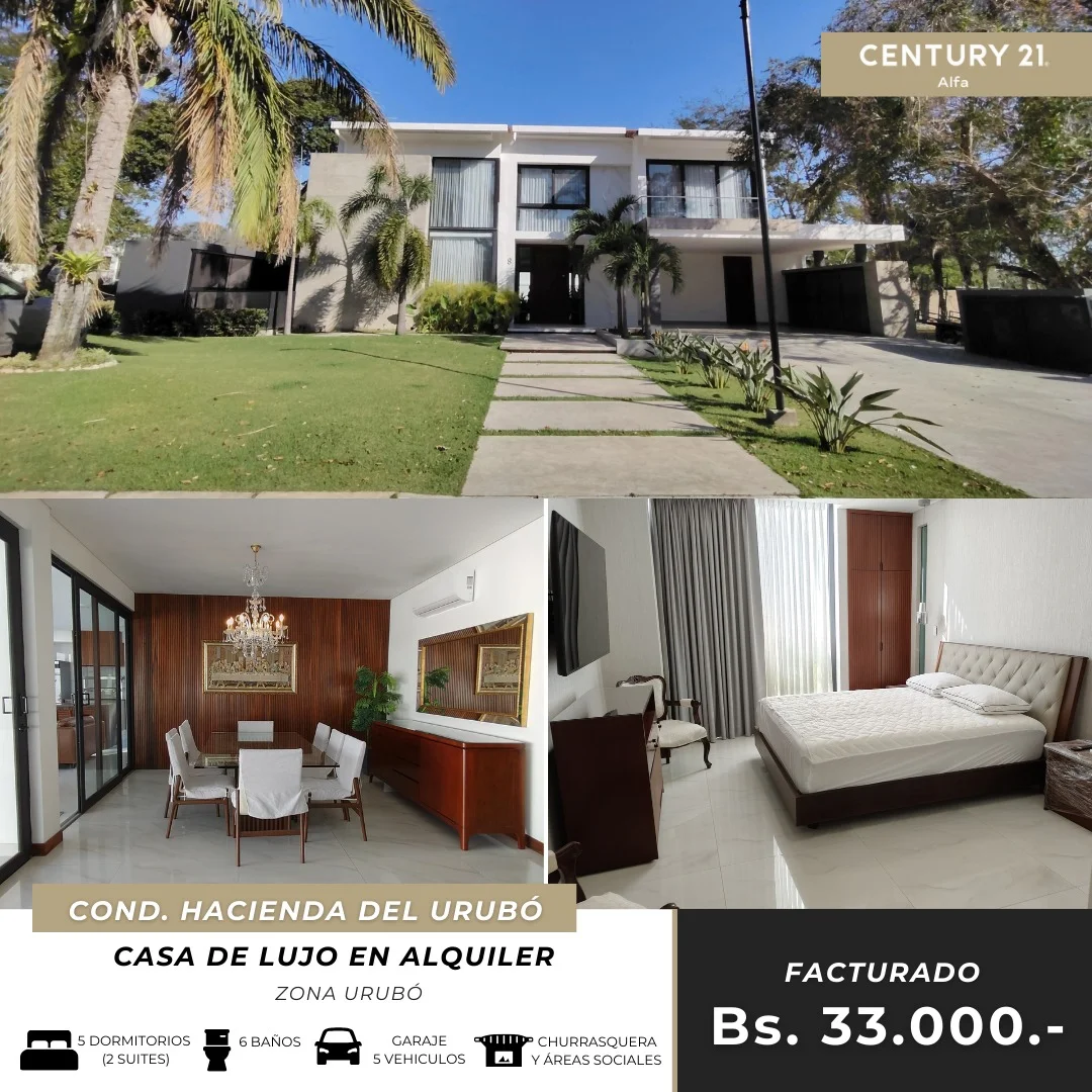 Si buscas comodidad, lujo y naturaleza, esta es tu oportunidad . Una residencia exclusiva lista para mudarse, ubicada en uno de los condominios más prestigiosos del Urubó.