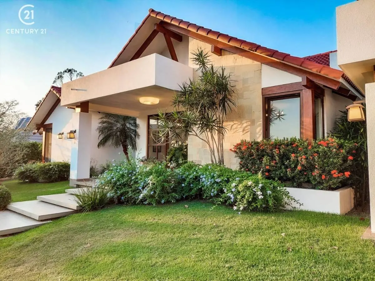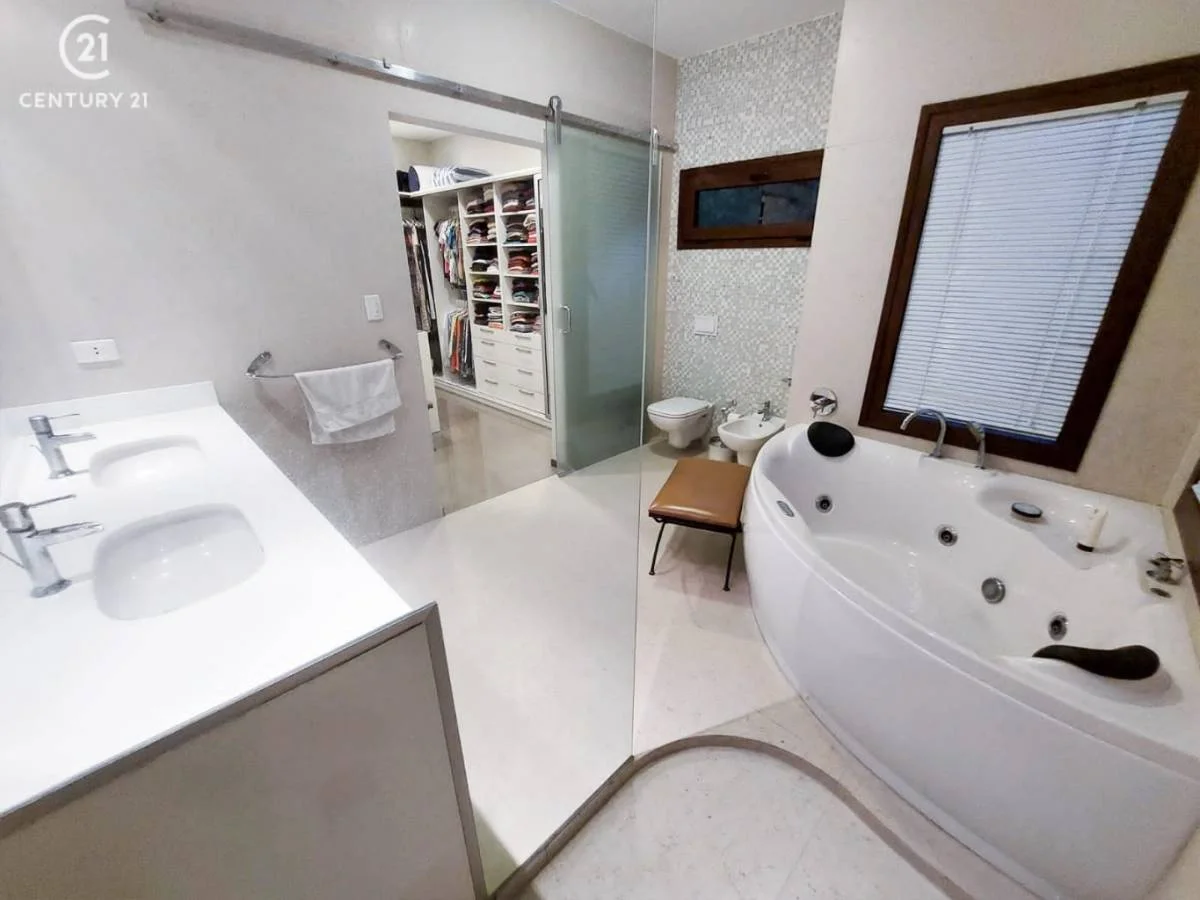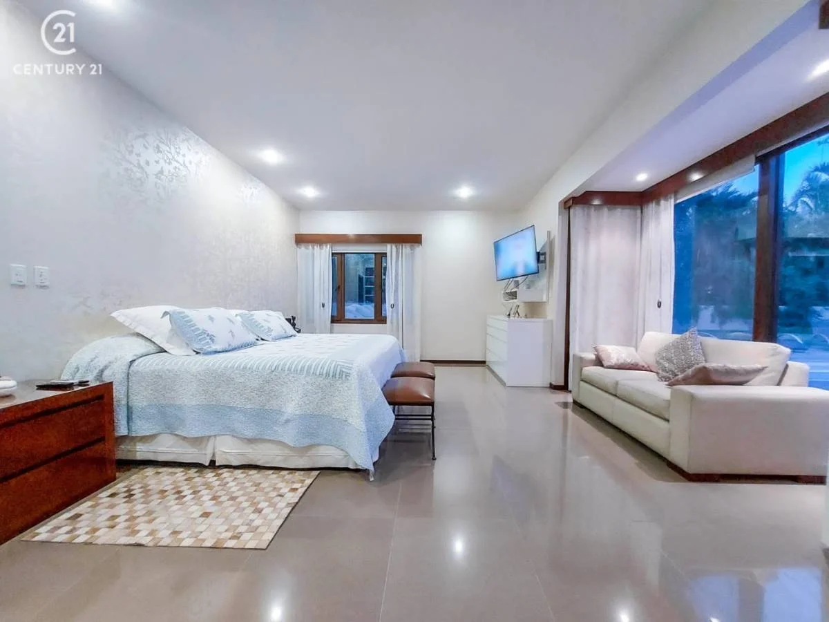 Consta de: 3 dormitorios en suite con vestidor, 1 master suite con vista a la piscina y jardín, 1 sala de estar, living- comedor, escritorio ejecutivo, cocina con comedor de diario con sala de tv, baño de visitas, dependencia de servicio, 2 depósitos, piscina, churrasquera, sauna, jardín, garaje para 4 vehículos.