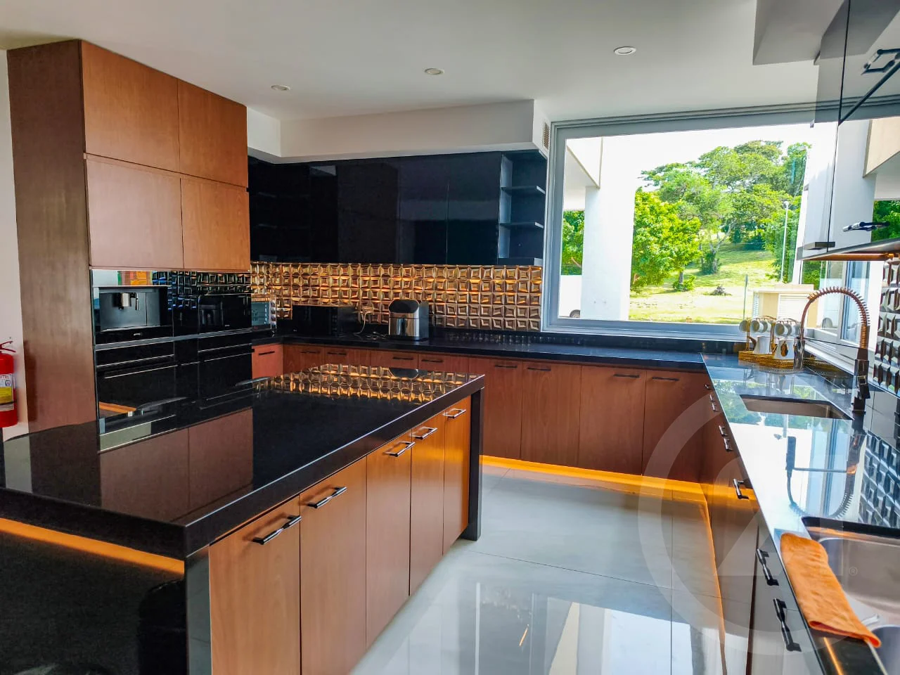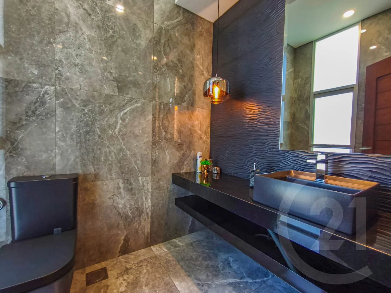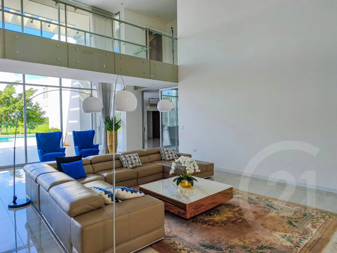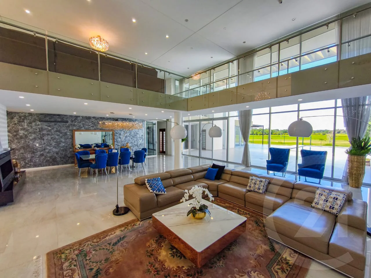- Acceso Principal y Área Social. - La entrada principal cuenta con techo de doble altura, que aporta majestuosidad, luminosidad y una sensación de amplitud excepcional. Este espacio es realzado por una lámpara gigante de diseño, concebida como una pieza escultórica y protagonista visual, que define el carácter elegante y exclusivo de la residencia desde el primer momento.