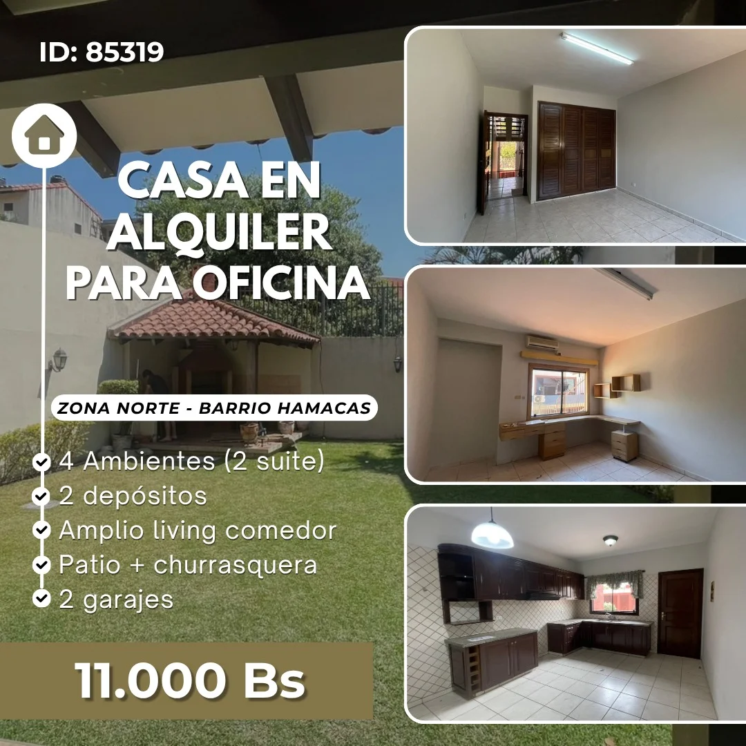 CASA EN ALQUILER PARA OFICINA O VIVIENDA – ZONA NORTE, BARRIO HAMACAS