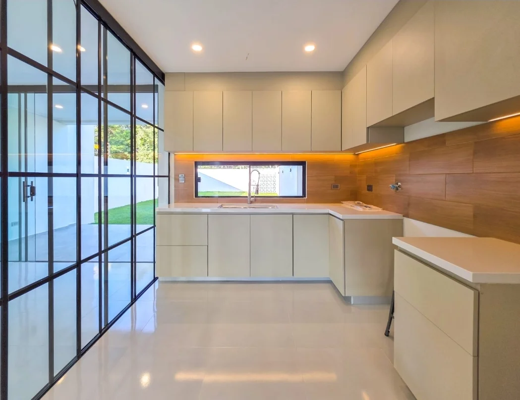 * hermosa cocina abierta con vidriales que la pueden cerrar.