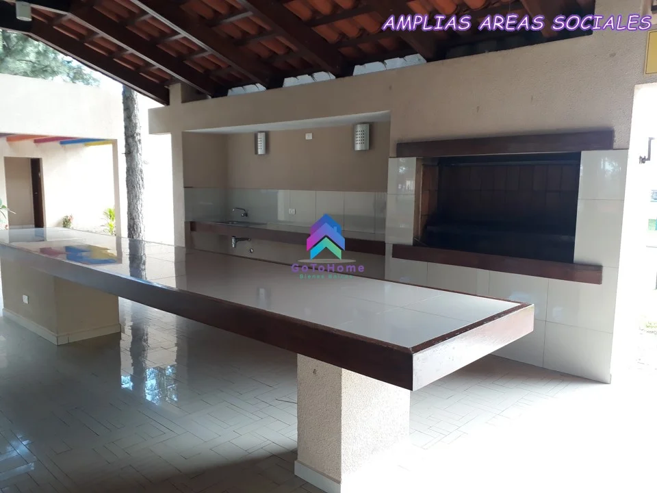 Además el condominio consta de hermosas áreas sociales, salón de eventos, churrasqueras, canchas de fútbol, basquet, tennis, parque para niños, piscina, gimnasio, sauna, etc.