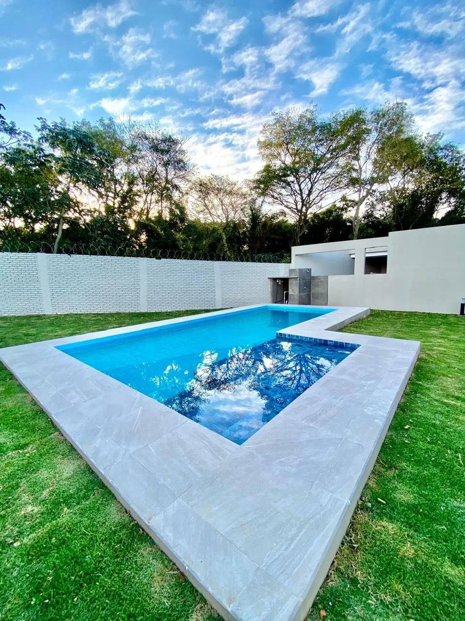 Jardín, Churrasquera y piscina.