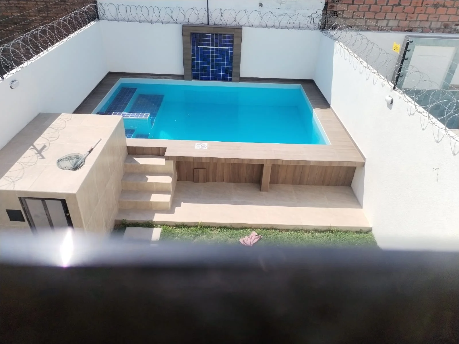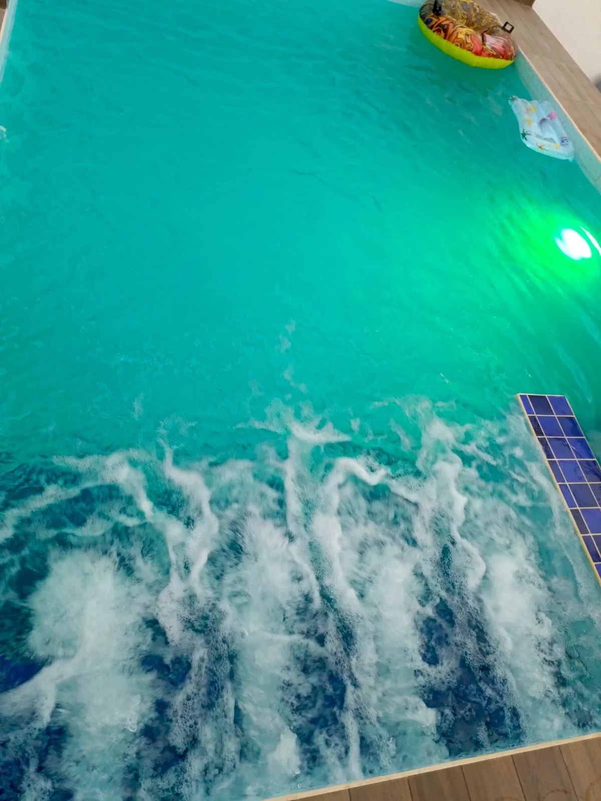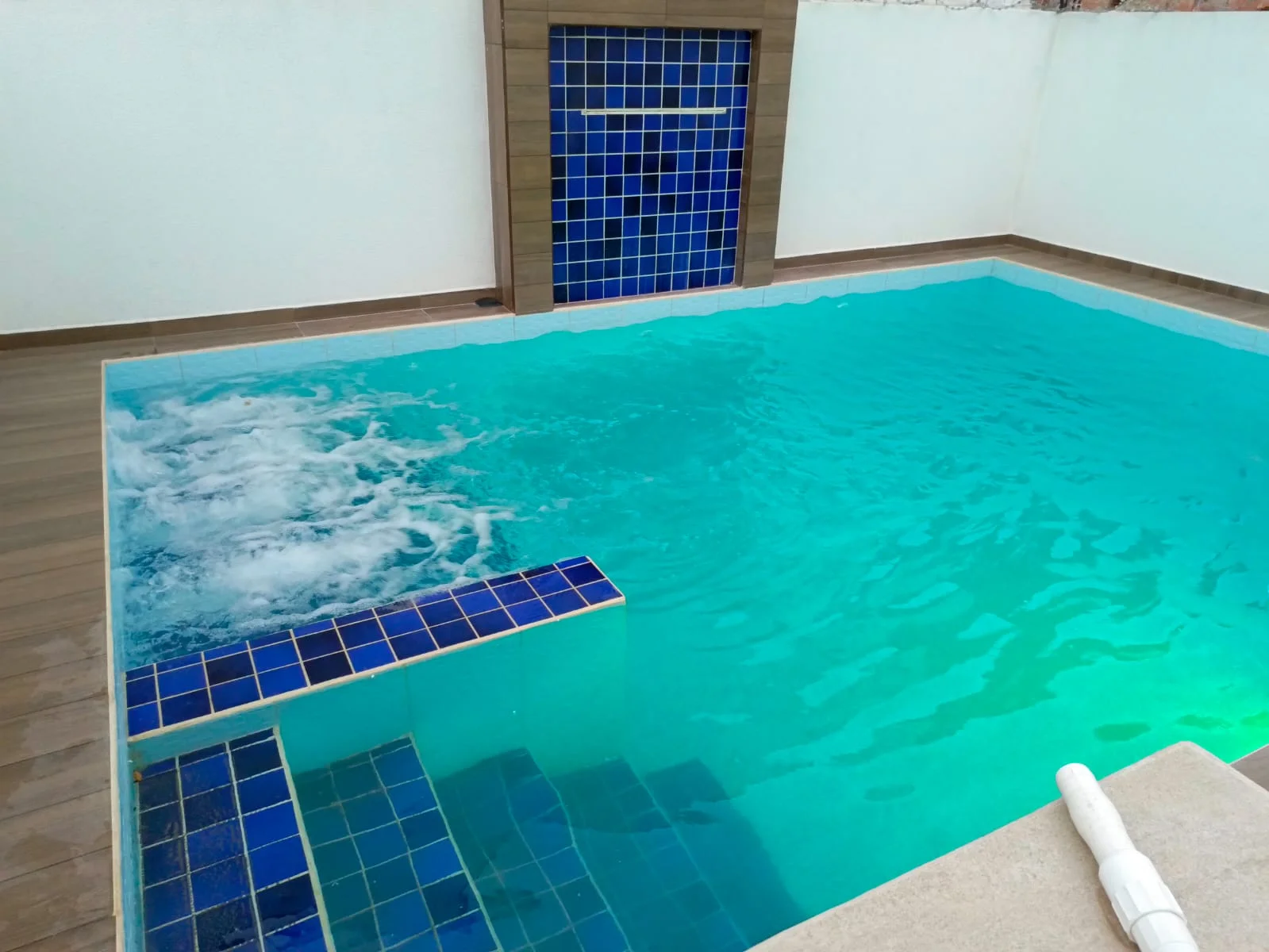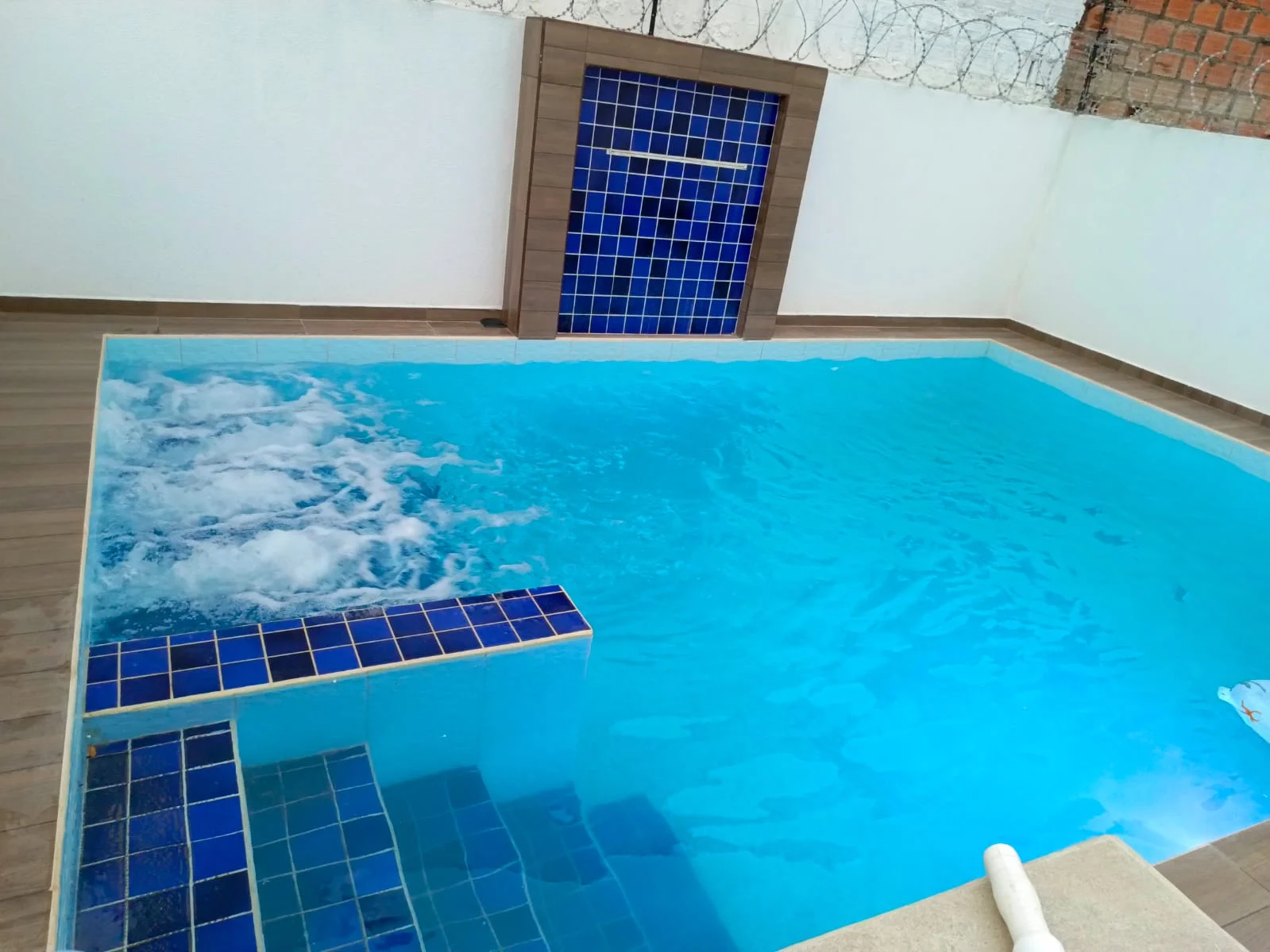 Piscina con juego de luces, cascada e hidromasaje