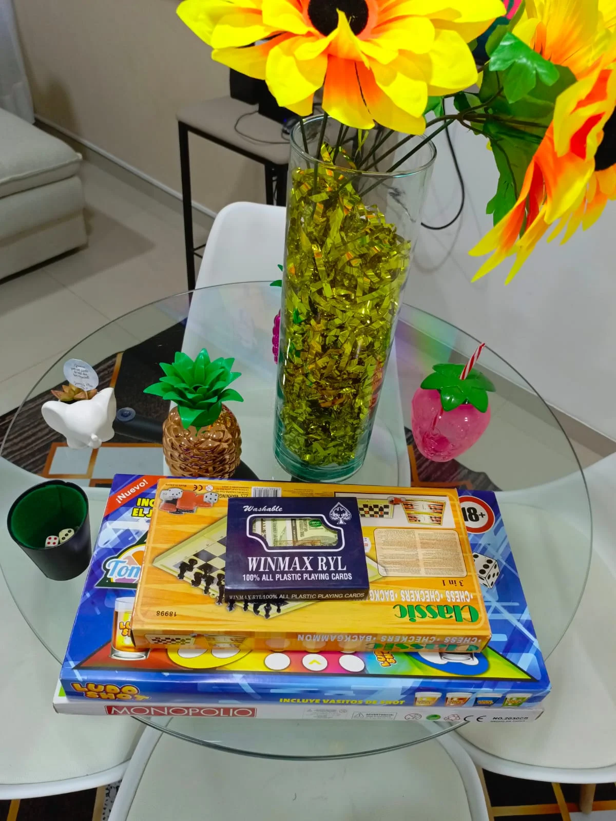 Juego de futbolines y juego carta, cacho, damas.
