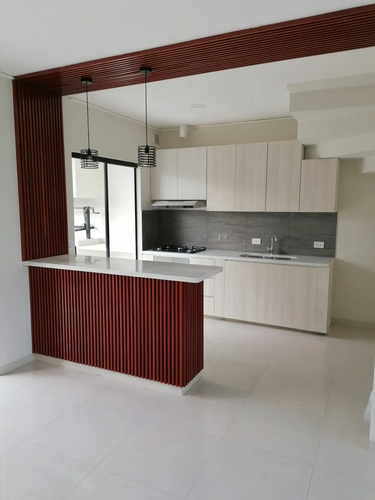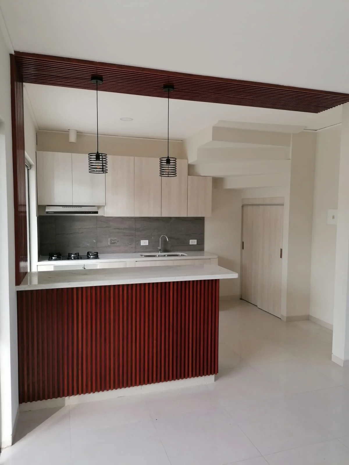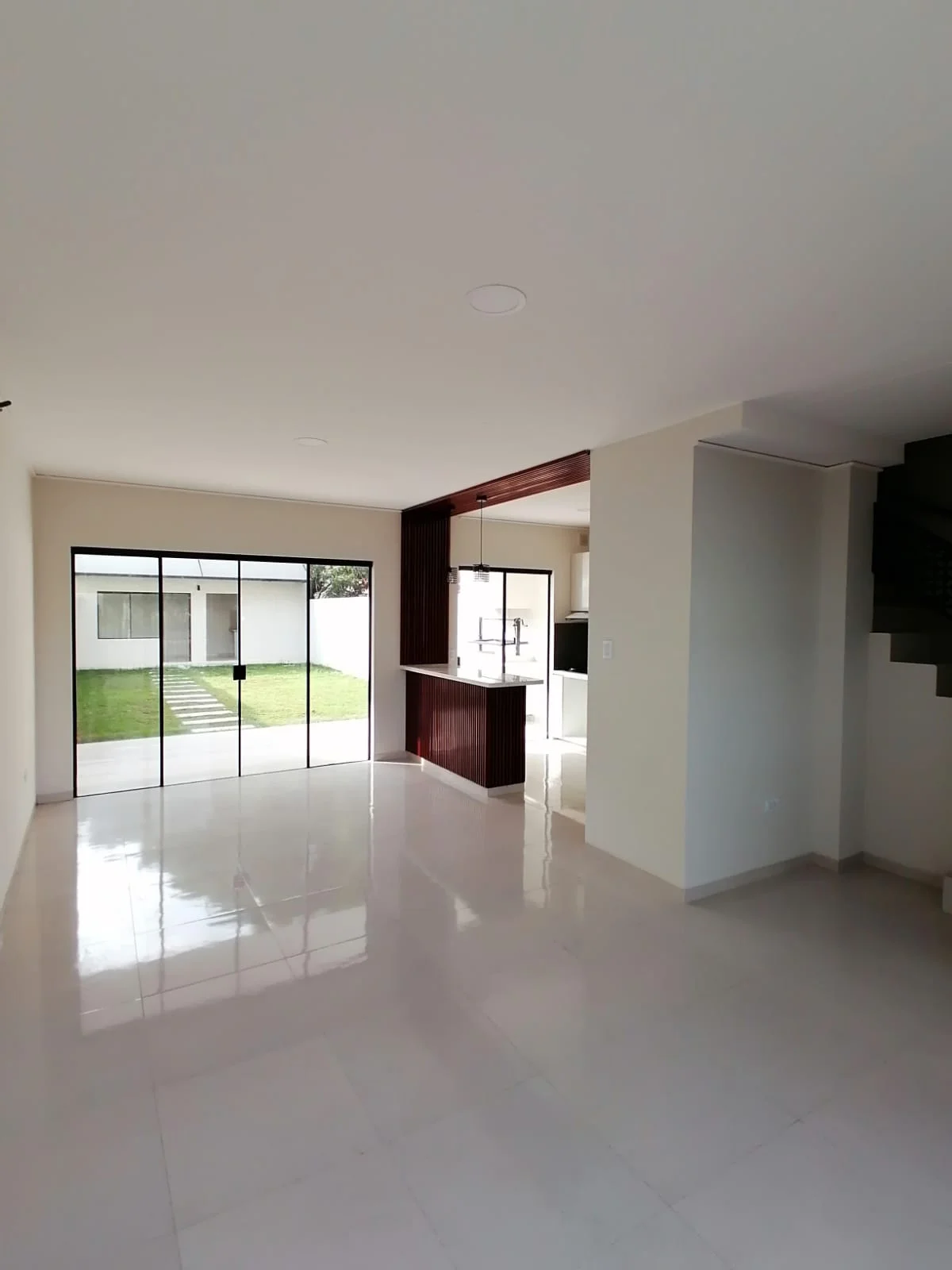 Living-comedor, cocina americana con mueblería alta y baja, desayunador, baño de visitas, galería, churrasquera, cuarto y baño de servicio, area de lavandería, jardin amplio y garaje para 2 vehiculos grandes.