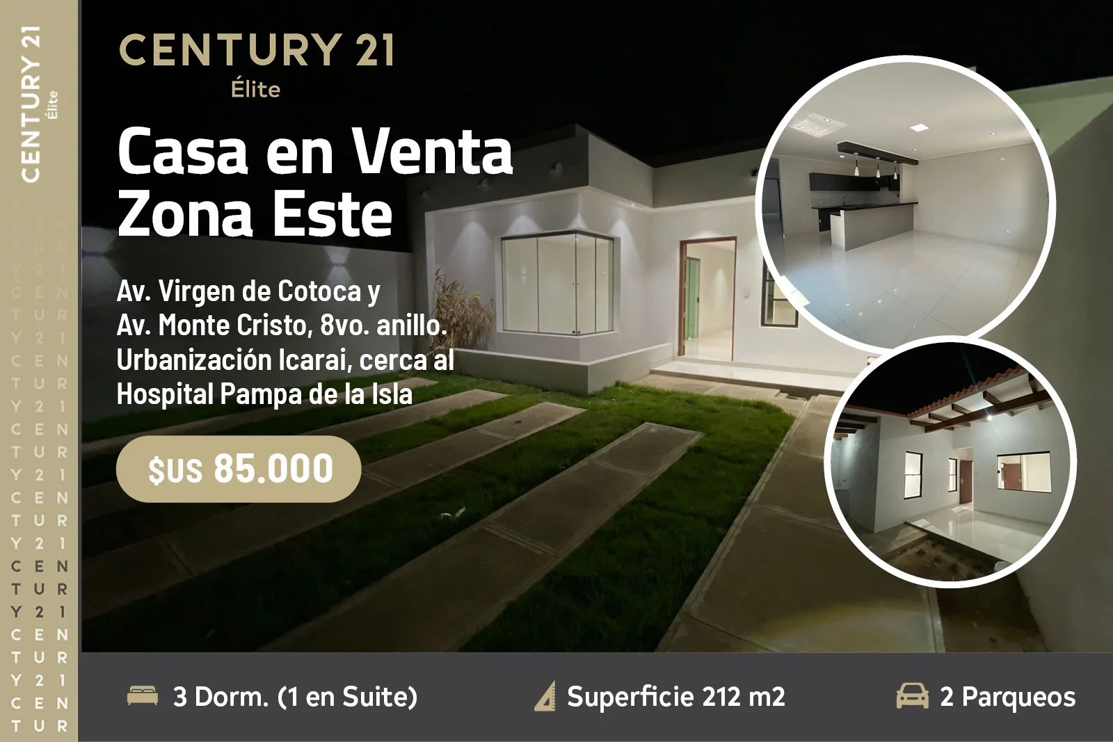 Entres las Av. Virgen de Cotoca y Av. Monte Cristo , 8vo. anillo. Urbanización el Icarai, cerca al Hospital Pampa de la Isla y la universidad ecológica.