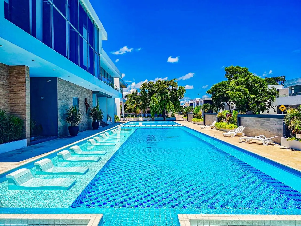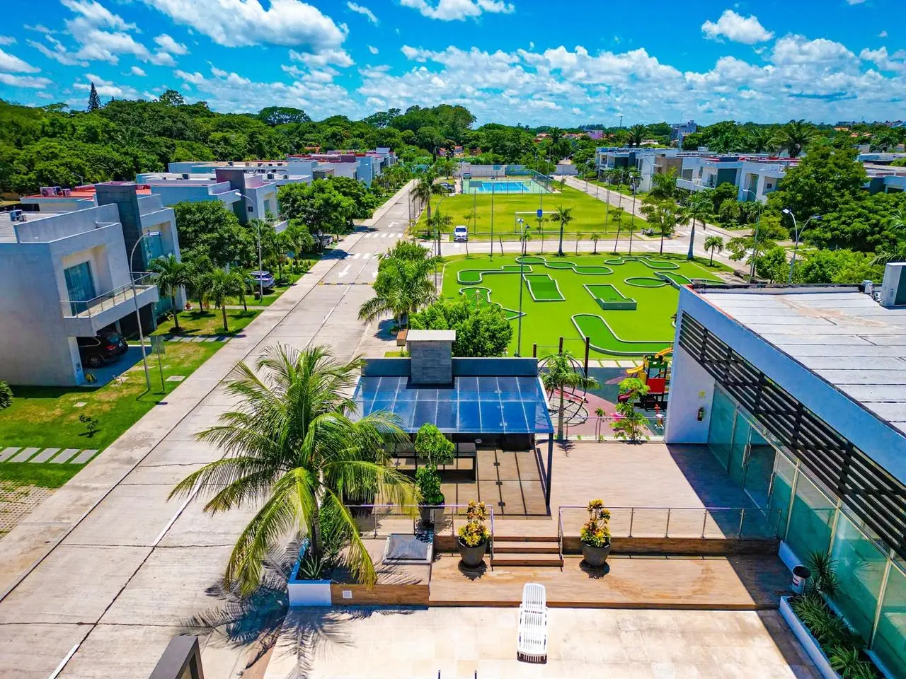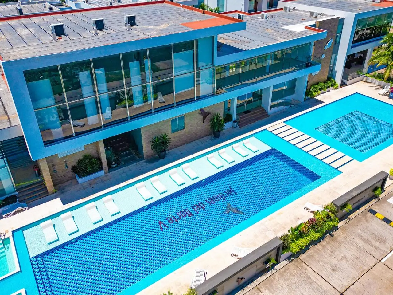 Piscina olímpica, jacuzzi, gimnasio, cine 4K, salón de eventos, canchas deportivas, golf y más.