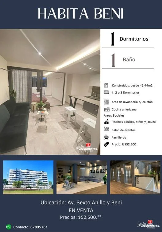 El condominio Habita Beni se encuentra ubicado por el sexto anillo al Norte a solo 3 cuadras de la Clínica de Las Américas, misma que tiene convenio con el Alberth Einstein de Brasil en una zona residencial de muy alto desarrollo por lo que la plusvalía de su inversión estará garantizada.