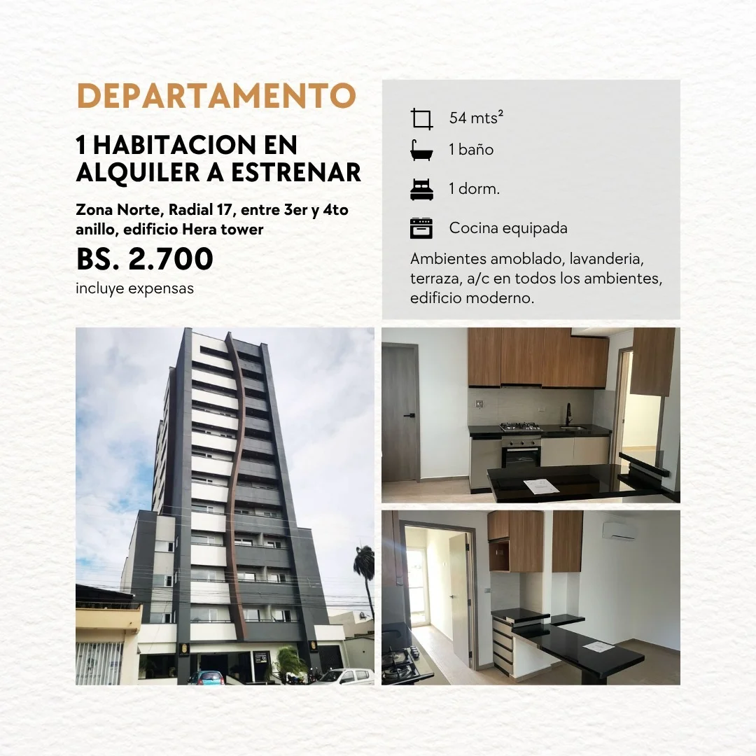 ????️ DEPARTAMENTO DE 1 HABITACIÓN A ESTRENAR EN ALQUILER ZONA NORTE