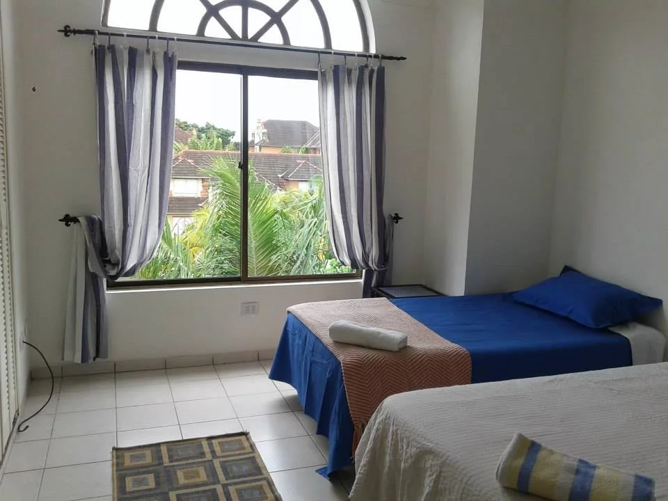 Hermoso departamento con bonita vista y buena ubicación en Condominio - Hotel Buganvillas. Ubicado en Av. Roca y Coronado lado de Expocruz en Santa cruz. A 15 minutos del centro entre 3 et 4 anillo Oeste. Consta de 3 dormitorios / 3 baños (2 en suite) suite con Vestidor, baño privado con tina, caja fuerte y vista a la piscina. Living/comedor. Roperos empotrados, cortina. Aire Acondicionado Central Frio / Calor regulable. amplio Living - Comedor con ventanales con buena ventilación (norte/sur). Cocina, Gas Domiciliario, Calefón. Lavadero, Habitación de servicio y Baño, Wifi. Ahora está equipado para 7 personas en Airbnb. 1 Parqueo. Servicio privado de Taxi 24 hs. Acceso libre a 3 Piscinas, una Temperada ( única en Santa Cruz ), Churrasqueras, Jacuzzis, Bar y snack grill , Cancha de Tenis, Cancha de Futbol, Cancha de Beach voley, Parque infantil, Arenero , Seguridad 24 horas, Supermercado, lado colegio francés