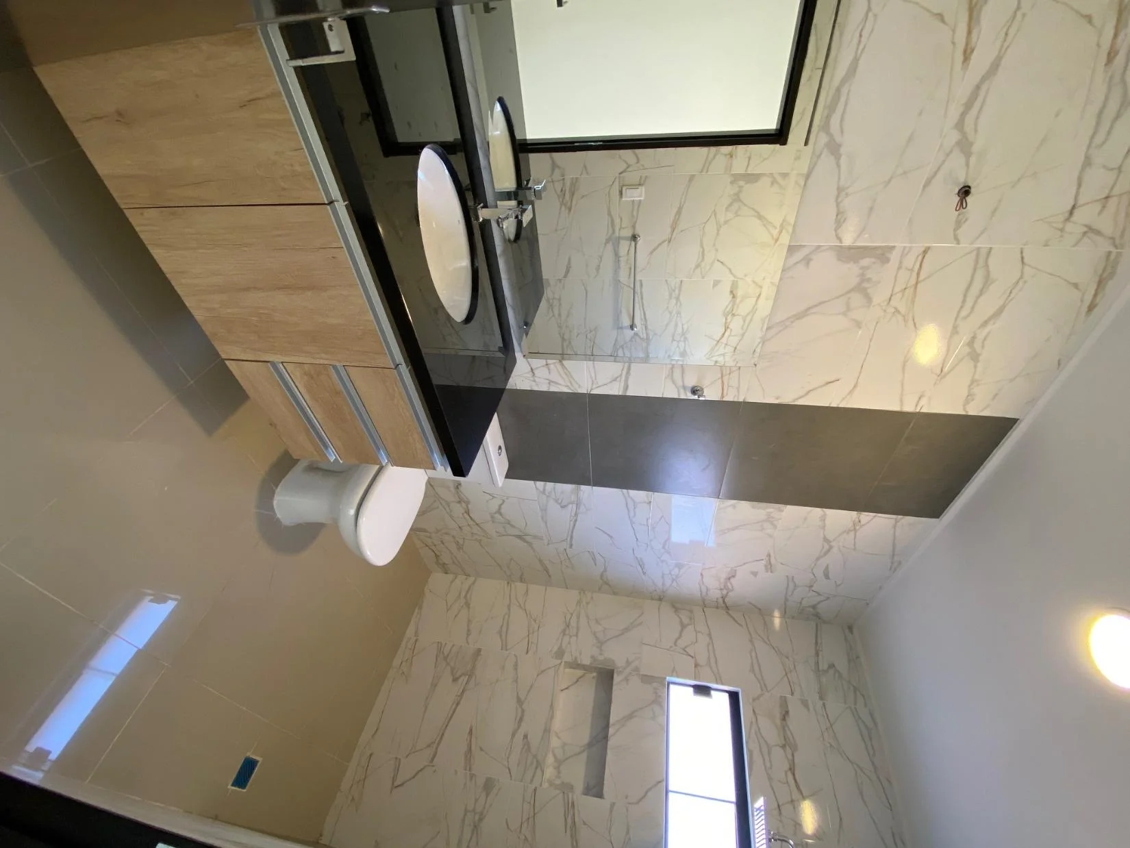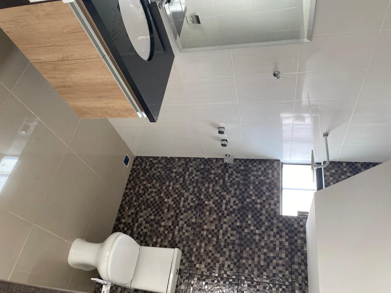 Baño completo de visitas con mueble y espejo