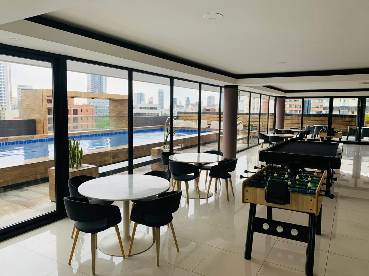 AMPLIA PISCINA CON ESPECTACULAR VISTA, SALA DE JUEGOS Y UN GIMNASIO COMPLETO.