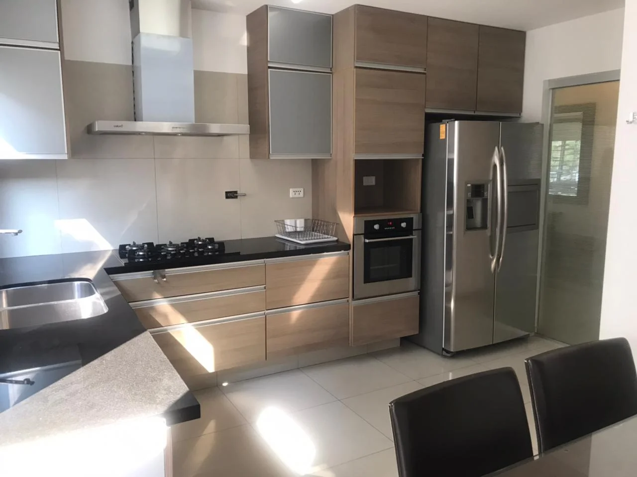 - Cocina equipada con cajonería (arriba y abajo), cocina encimera y horno extractor