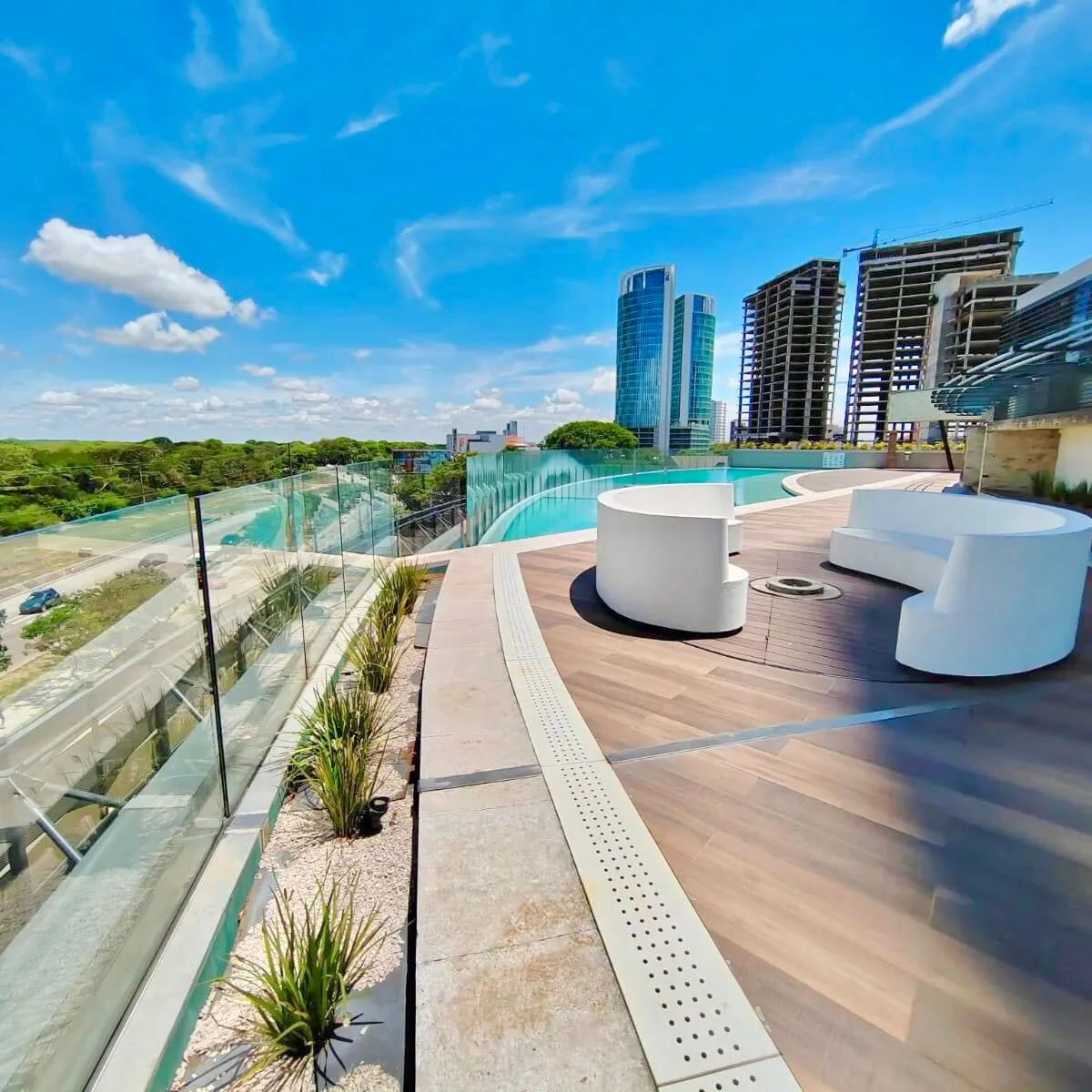 ▪️El edificio tiene lindas áreas sociales, piscina panorámica grande, amplio salón para eventos, un salón chico, para reuniones, parrillero bajo techo, cuenta con 2 ascensores públicos y escaleras.