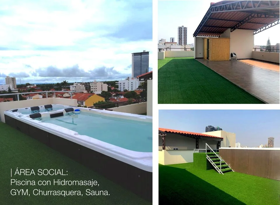 Santorini Suites Equipetrol, a media cuadra de la San Martín.