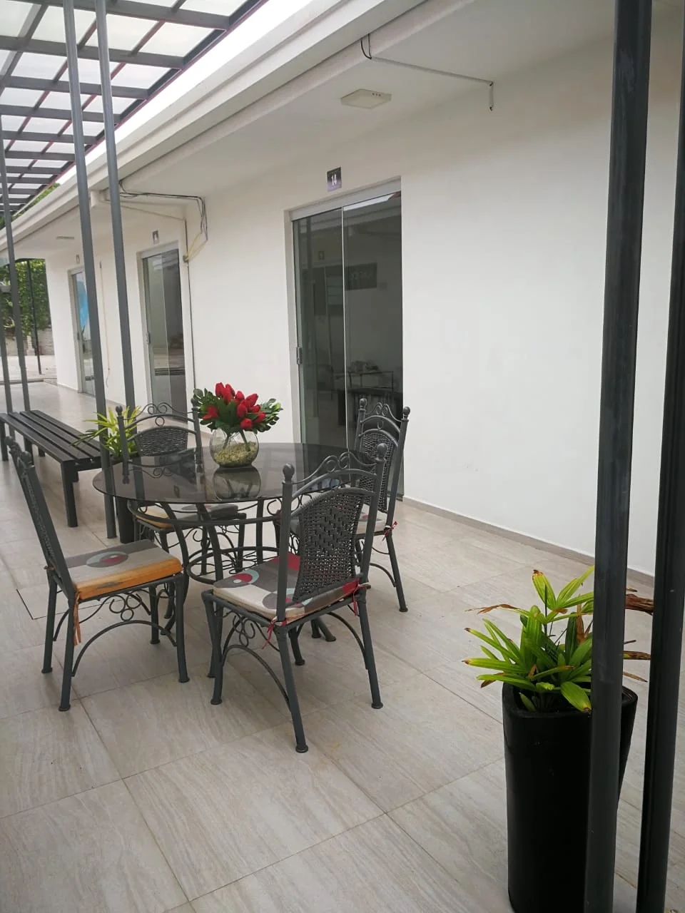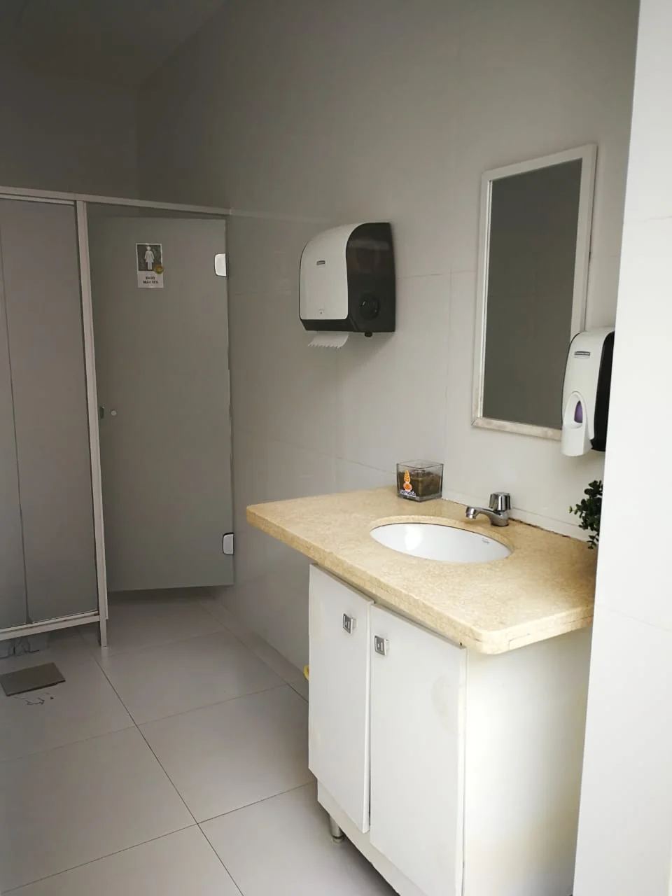 ????Piso de porcelanato, vidrio blindex