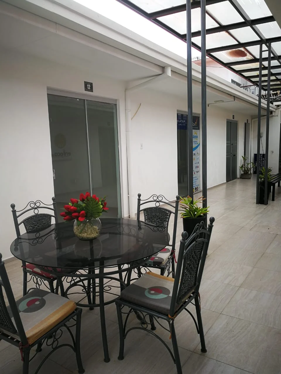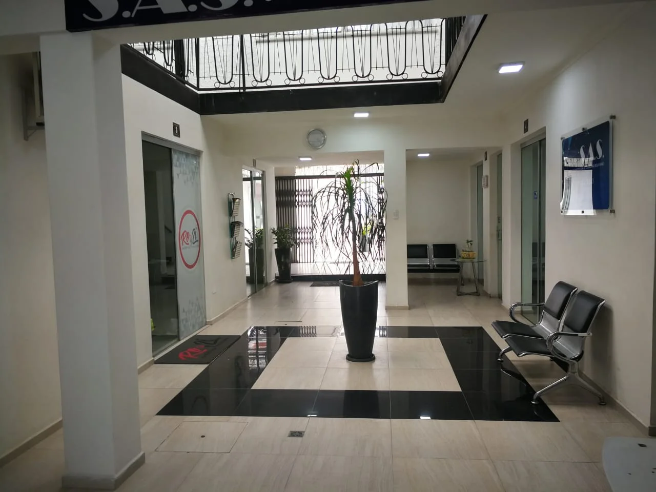 ????Pasillos amplios con asientos de espera para clientes