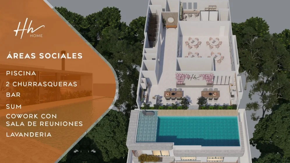???? Áreas sociales en el último nivel: Piscina, bar, churrasqueras, co-work con sala de reuniones.